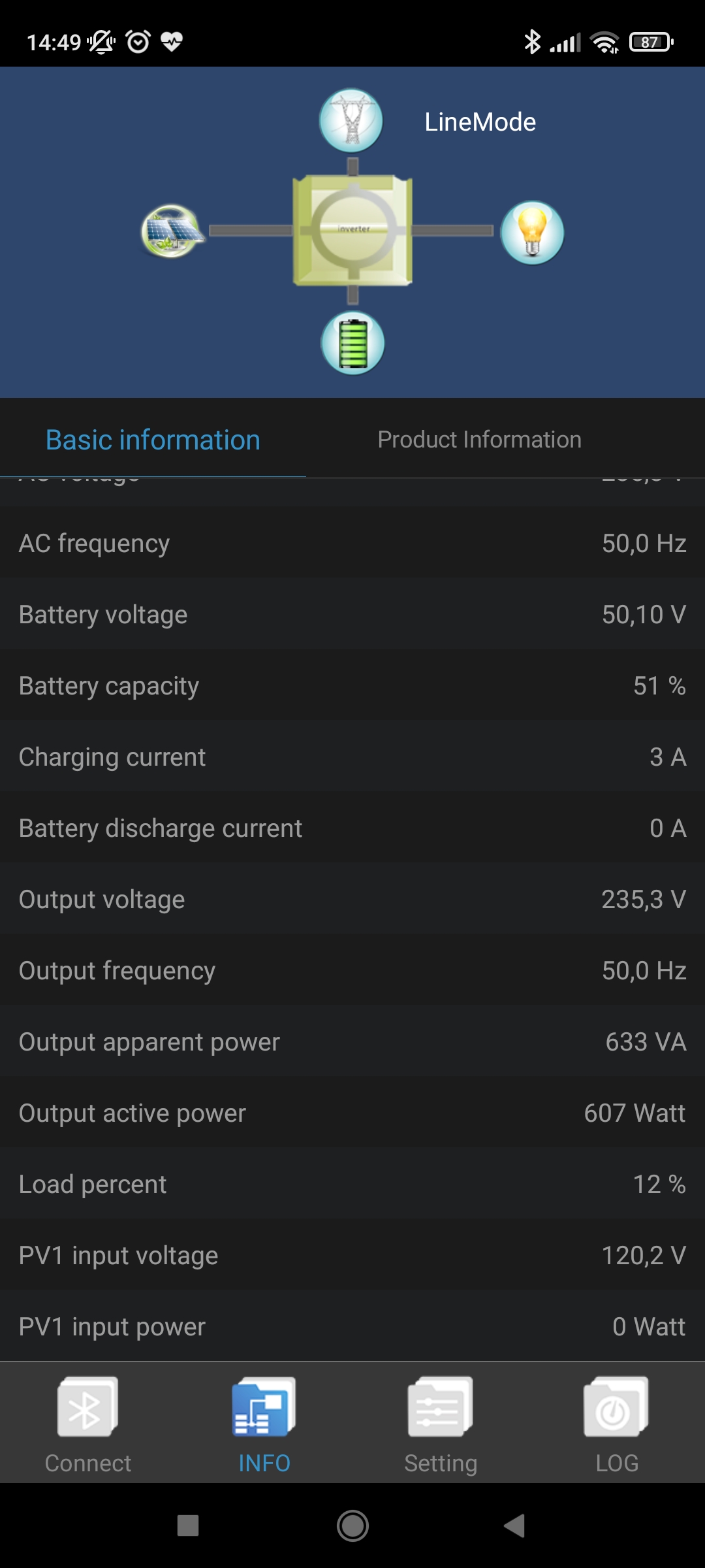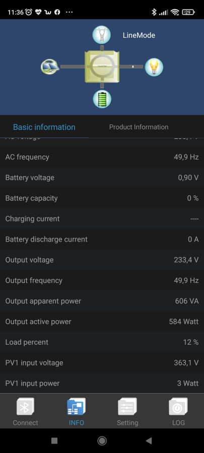Na panelu PIP jse pořád Bipass, a v aplikaci watchpower je režim "LineMode" Děkuji za reakce