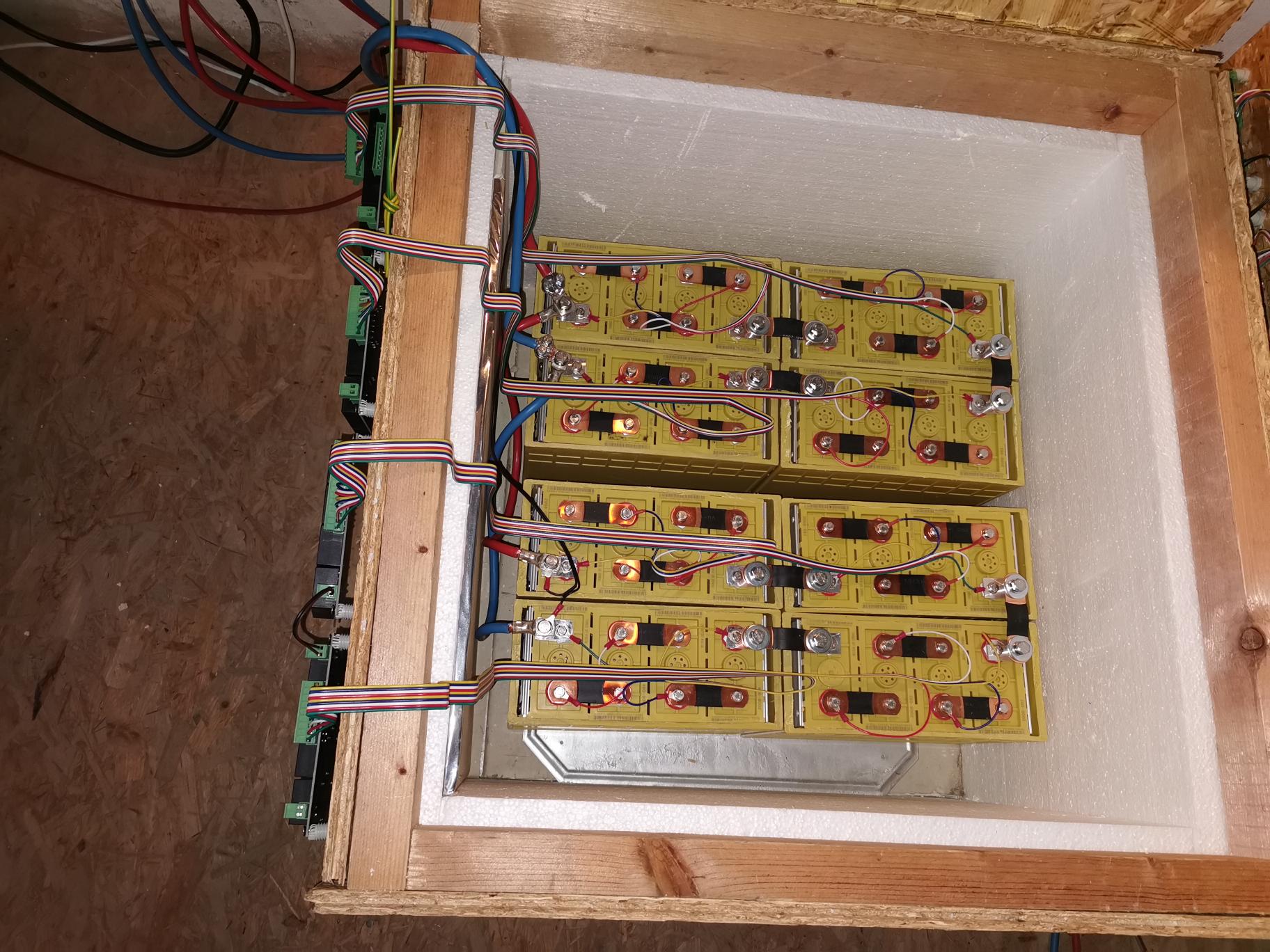 Pekné. Dosť by som dbal na vytvorení medzier medzi blokmi, nech nemusí BMS zbytočne vyrovnávať vplyv rozdielnych teplôt. Bude platiť - čo je pri obvode bedne, to je studené...