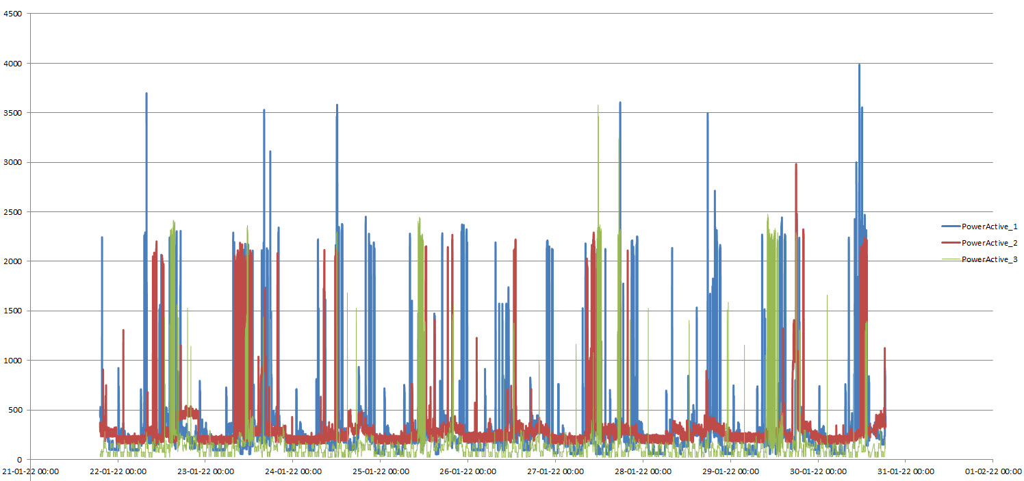 Máme bývalý statek, obytná budova, hospodařky stavení, nový 3f rozvody 3x25A, přes dvůr cca 20m stodola se střechou na JJV cca 200m2 35st. Spotřeba domacnosti je denně cca 20kwh, docela soumerně vytíženo ve všech třech fázích. Vytapeni dreveny peletky AKU, TUV termalni solary + peletky, bazen 35m3 z moznosti ohrevu. Elektřina na vařeni, spotřebiče klasika 1f, kromě sporaku. Točitý 3f spotrebice, bych měl napojeny stale bokem a ty nezahrnoval do fotovoltaiky. Spotřeba v čace, rano snidaně, přes den nikdo skoro doma neni, odpoledne doma ctyří osoby. viz grafy maximalní zatěře ve fazich cca 4000w, souběh, myčka, pračka, sušička, sporák, varna konvice atd.