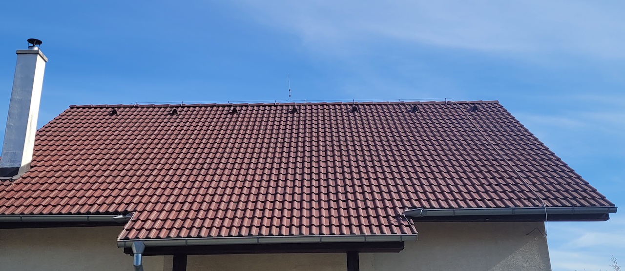 Toto je západné krídlo strechy, od ľavej hrany krytiny po bleskozvod na pravej strane je 960cm.