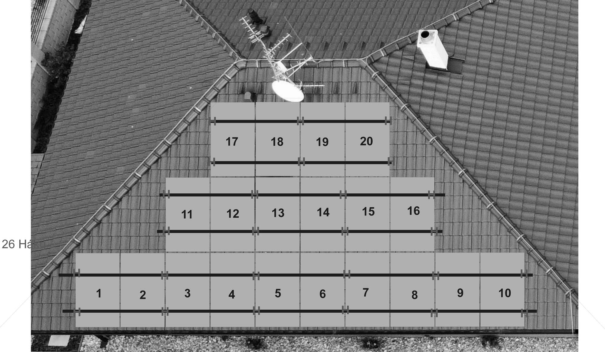 Antény+ stožár přijde pryč na střeše nebude.Hromosvod také bude předělán do bezpečné vzdálenosti od panelů.