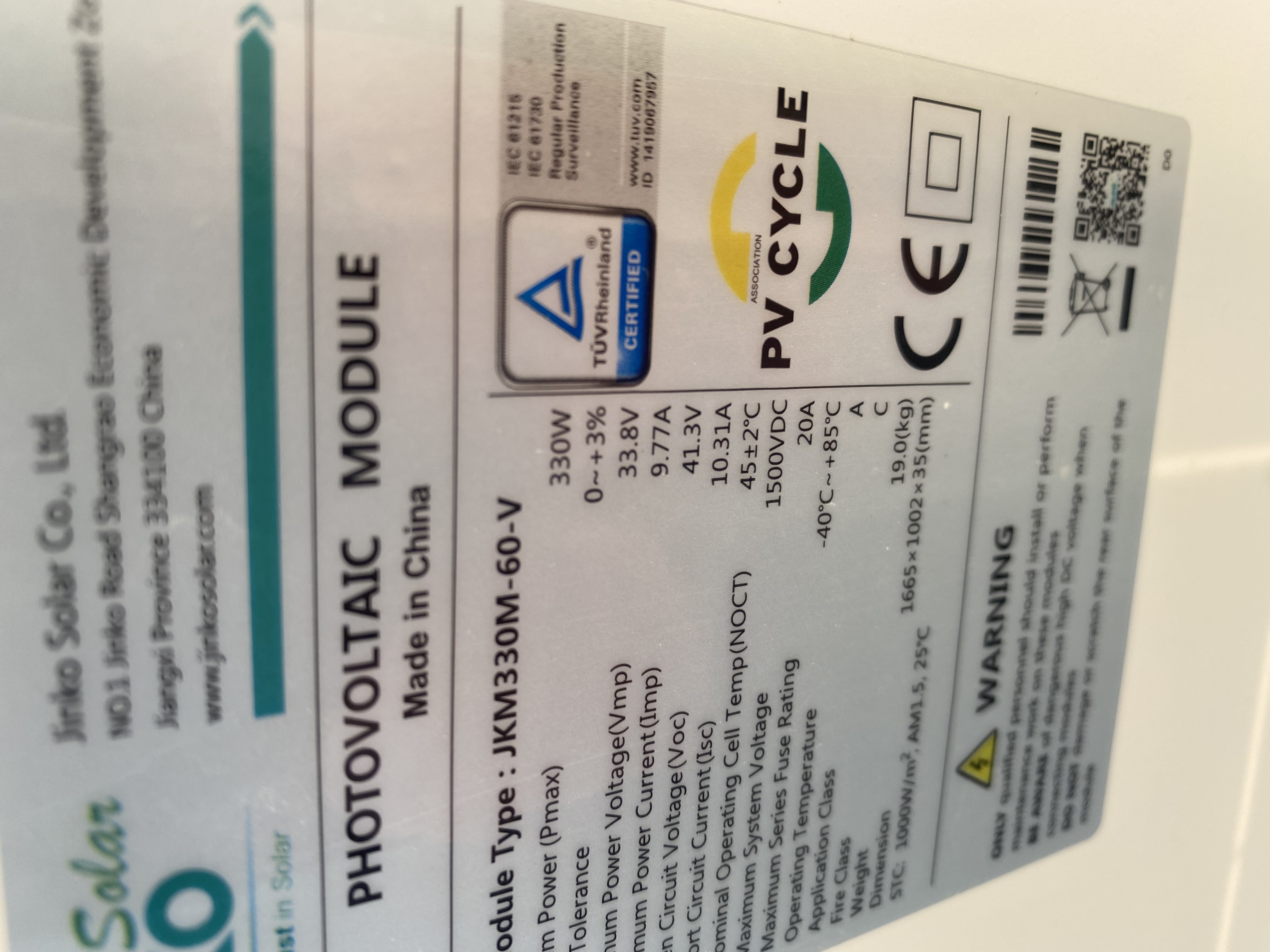 Re: Jinko 330w
