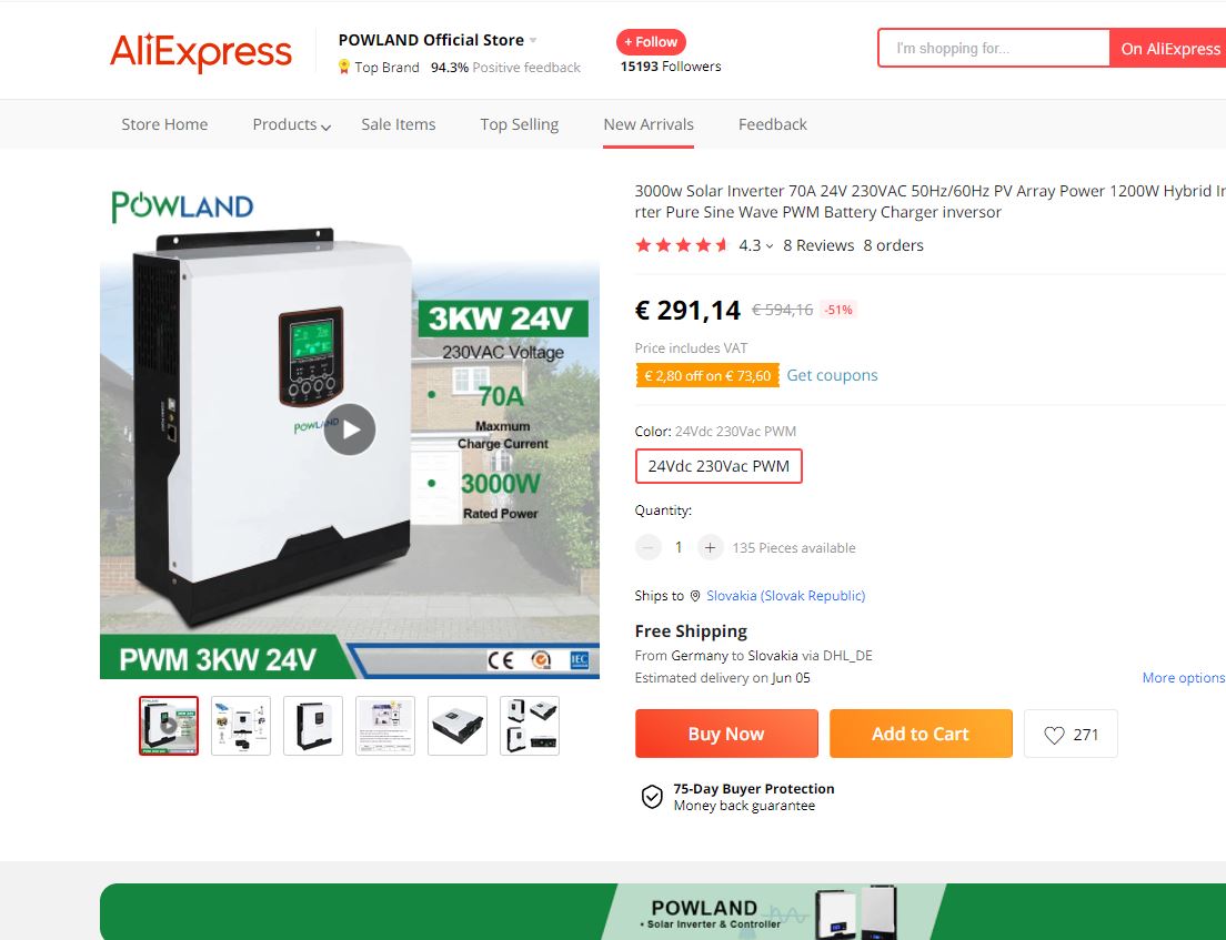 Otázka je ci je dáky lacnejší 3000W/24V, menič ako axpert, a ci to na foto je len iný napis na Axpertovy a je to to iste.. Lebo na AliExpress je to o viac ako 100 lacnejšie.