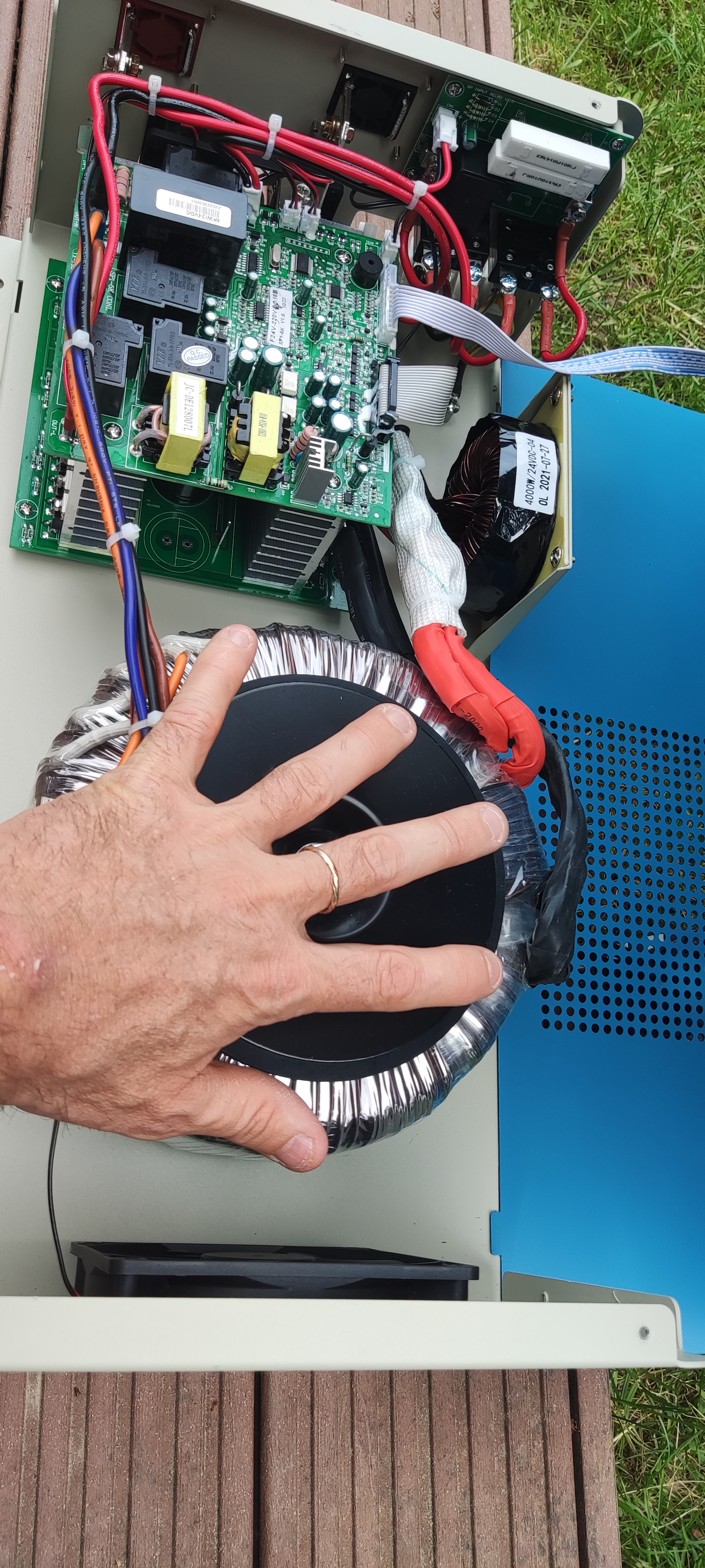Tohle trafo zkus zatížit 4kW na dýl než 20 minut a nestaqčíš se divit. Já mám trafo z PJ5000 v trubce, která nahoře končí axiálním ventilátorem, a po hodině provozu na 4kW už měkne ta PVC trubka a v místnosti je celkem přetopeno. Tyhle trafa jsou dobrý tak na 2kW trvale... Český troridní trafo 7kVA pro provoz 24/7 váží 50kg samotný...