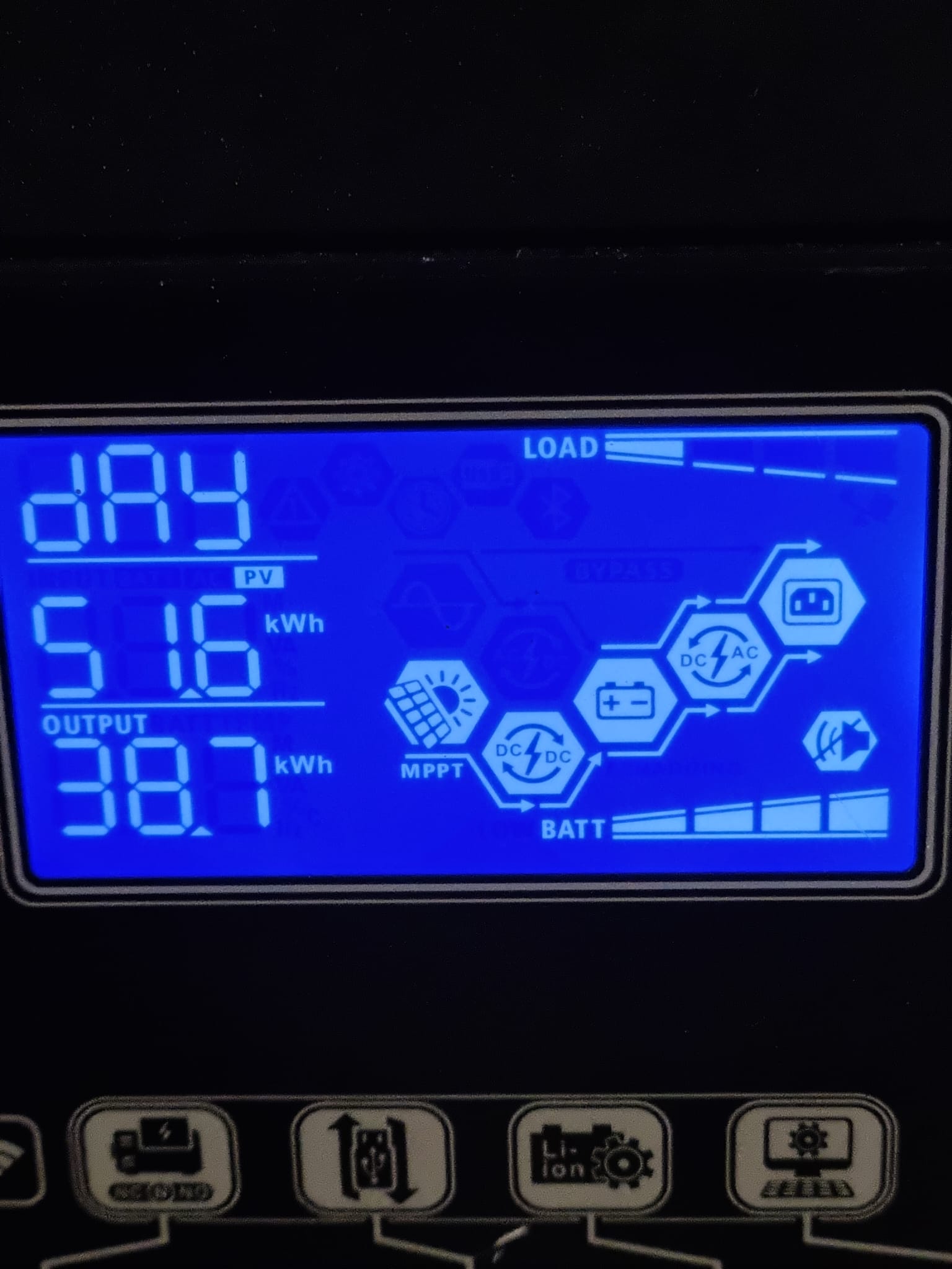 Tak jsem dnes rozchodil dataloger na AxpertuMax7200.Ukazuje to pěkně, bohužel opět to nesčítá denní výrobu stejně jako na Easunu.Funguje někomu na těchto levných měničích ukazatel denní výroby kWh v mobilu???