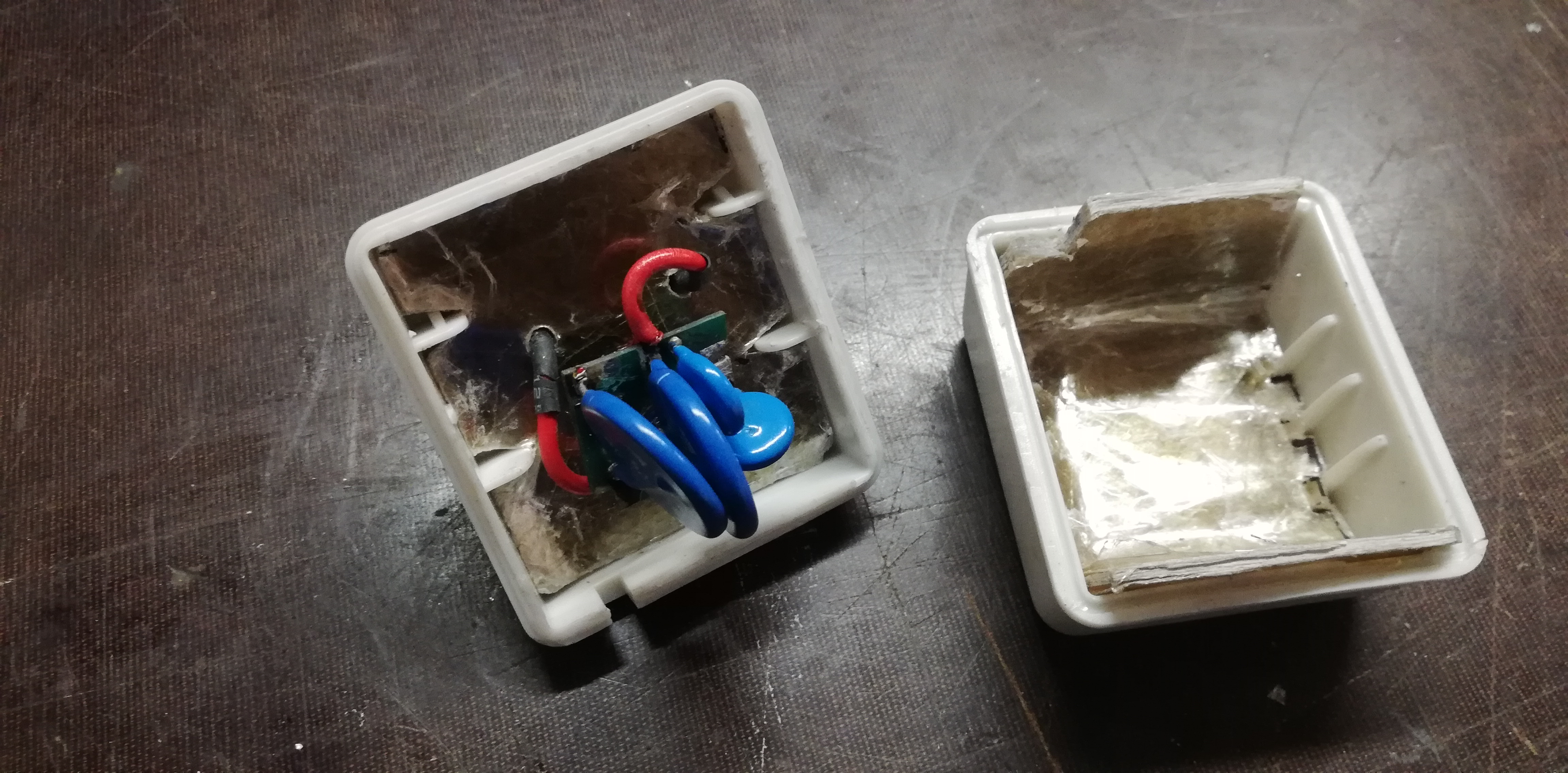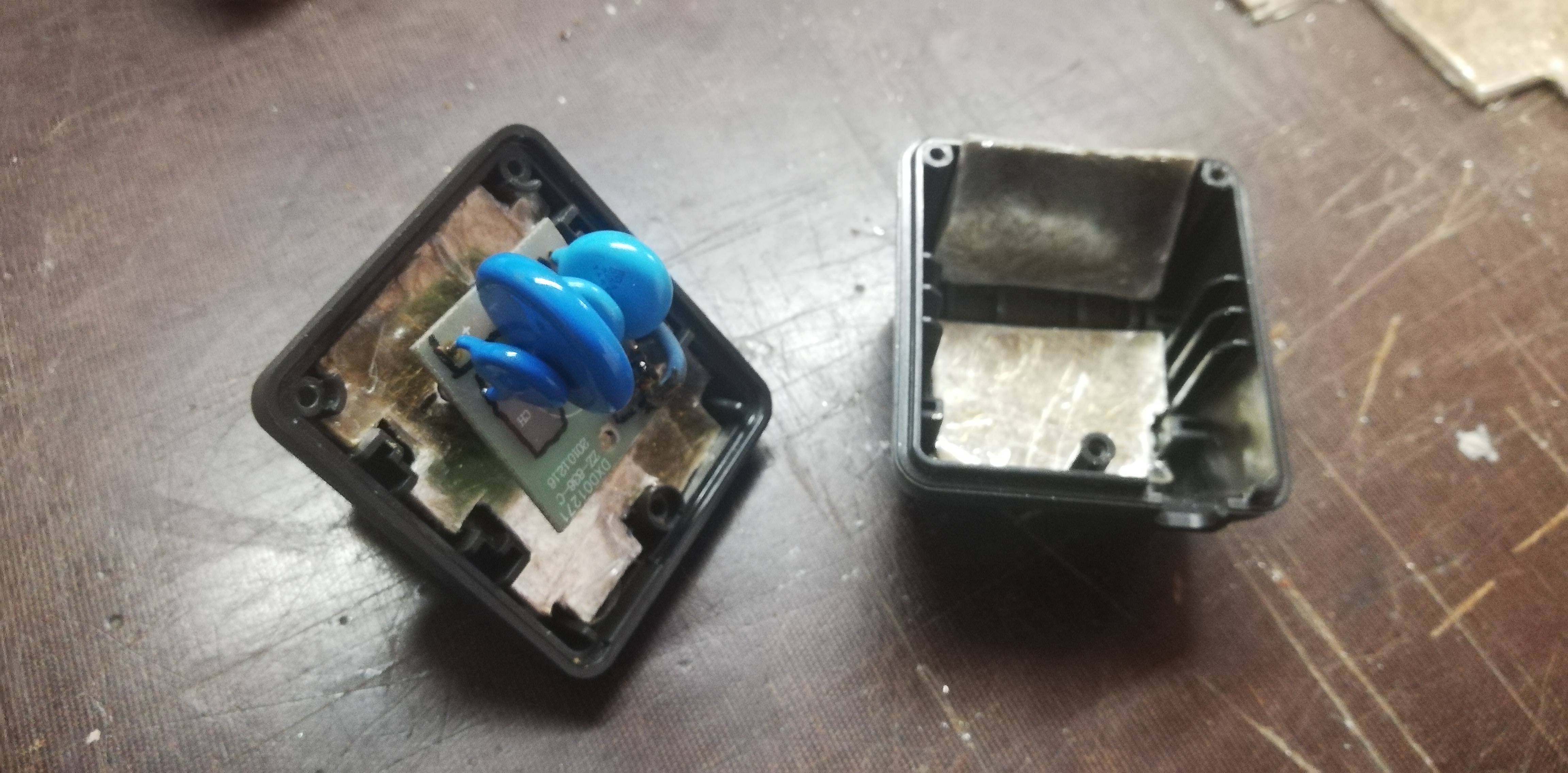 pouzdro adaptéru.. varistory, vyložené slídou, zasypané křemičitým pískem.