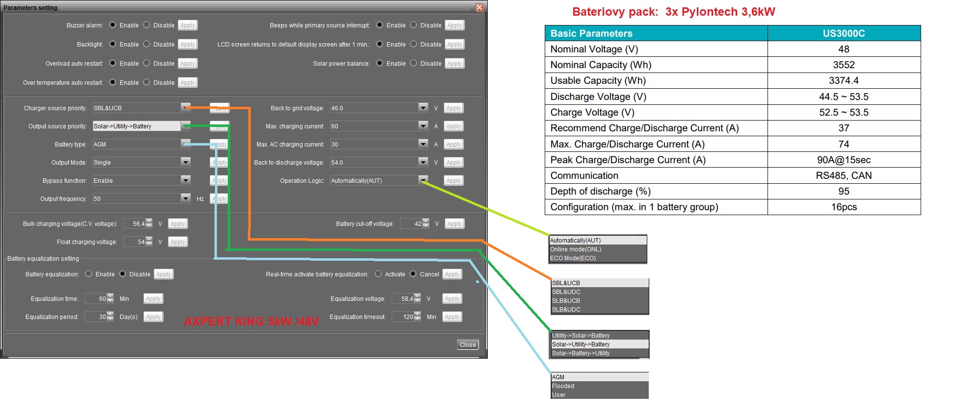 Ahojte, vedeli by ste mi prosim pomoct, ako co najoptimalnejsie nastavit baterie pylontech na Axperta?