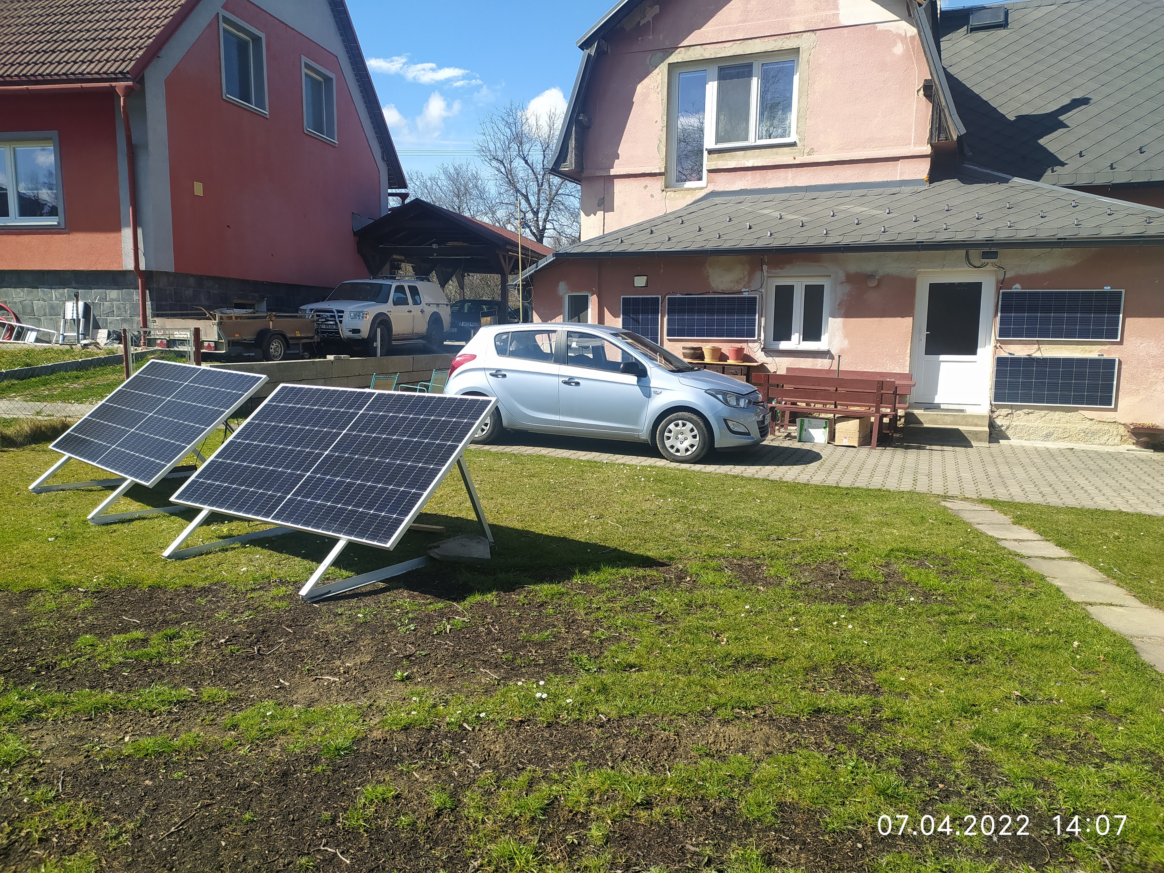Viz foto v popředí 2x 500Wp v zadu 4x 150Wp