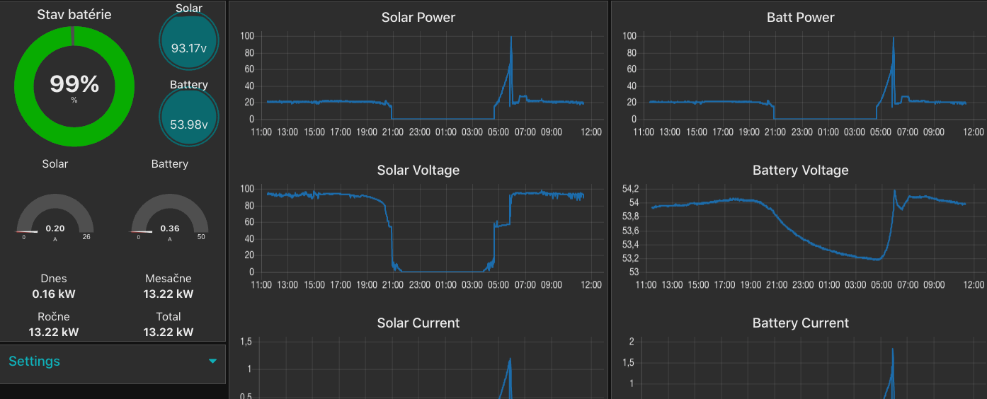 Ako ti tam sedia hodnoty Solar Power? Lebo ja to mam rozbehane asi mesiac a ked mam Solar power viac ako +-500W tak mi to zacne ukazovat blbosti. Mam napr na paneloch vykon 1200W a Solar power ukazuje 800W.