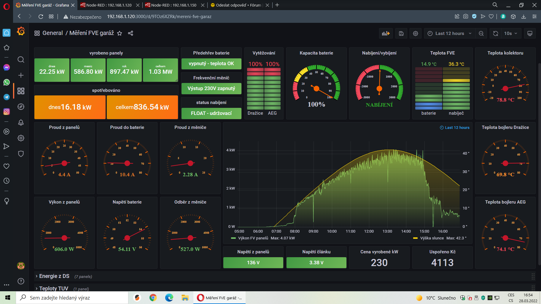 Já používám solaranzeige na raspberry pi 400. Připojeno mám přes USB. Grafanu jsem překopal do této podoby