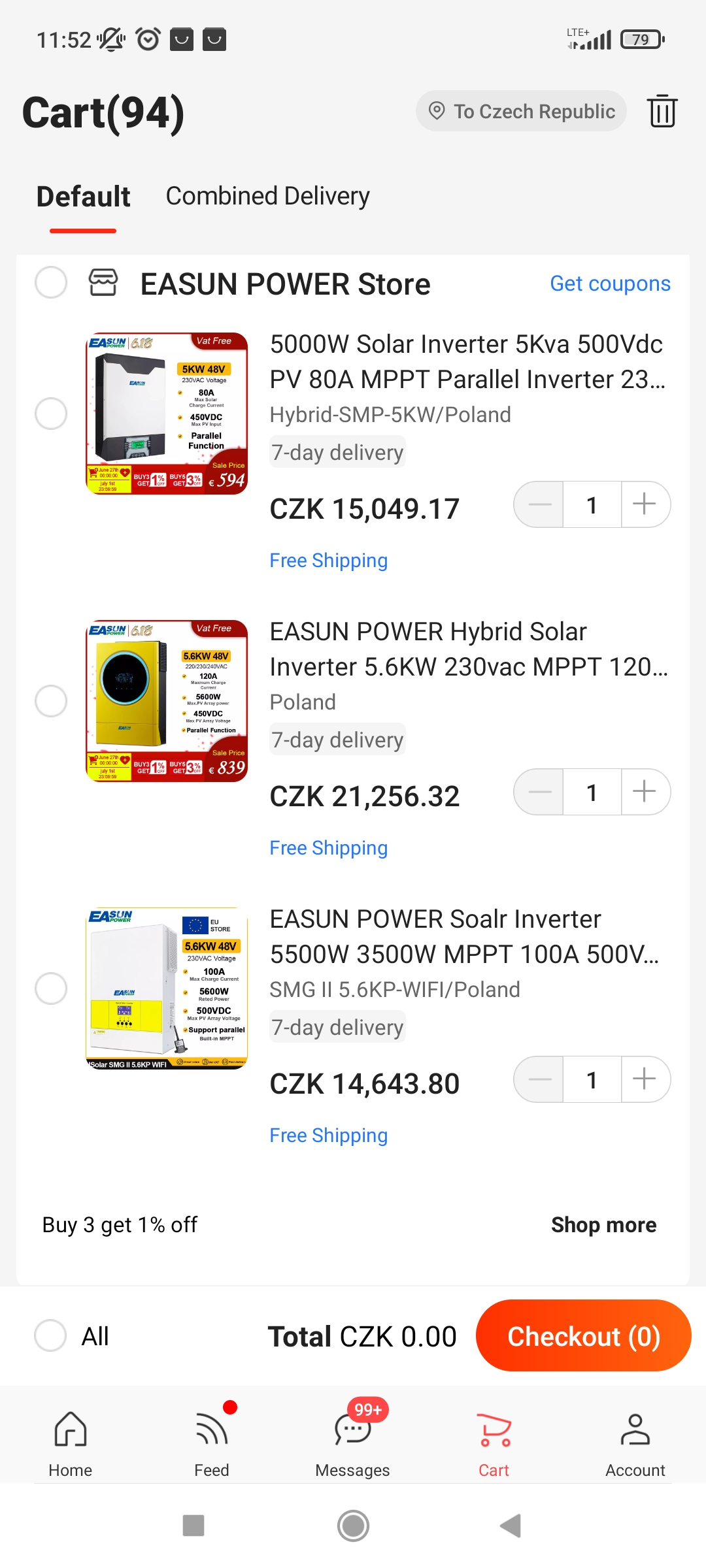 Ostrov. Aktuálně v provozu 15 kWp 12+10+10 55°jih, 30kWh 48V + 3kWk 12V Lifepo4 a 2x Easun smp 5kW sfázovaný + 3x Must mppt 6kW + UPS 12V 500Va + 3F měnič 3x400V 6kW.