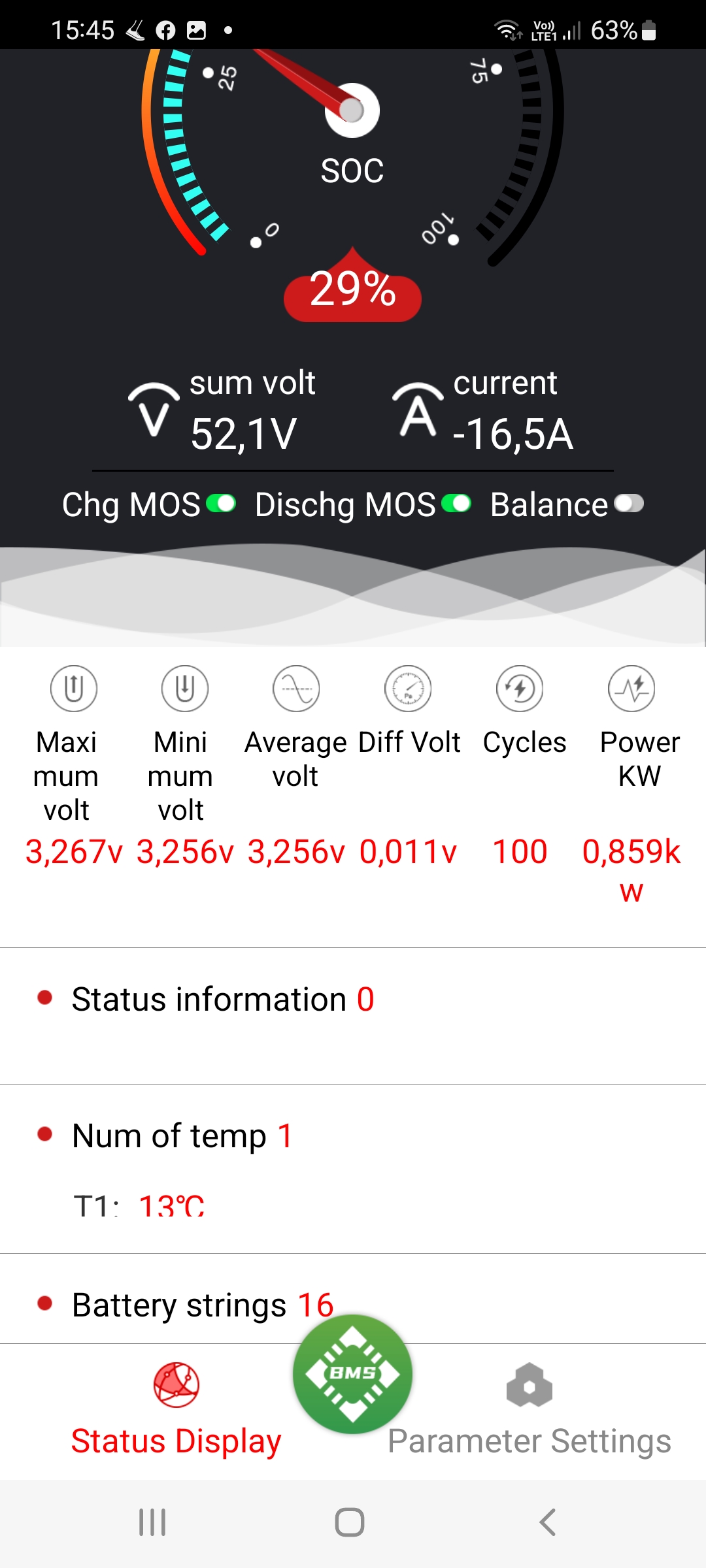 Trochu mám u tohoto měniče obavu jak si rozumí s LiFePo baterkama, když neumí komunikaci s BMS. Máš nějak externě ošetřeno aby nedocházelo k přebíjení nebo nadměrnému vybíjení, nebo stačí vhodně nastavit hodnoty napětí v nastavení měniče?