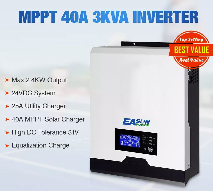 EASUN POWER 3Kva 2400W Solar Inverter 220V 40A MPPT 3Kva Pure Sine Wave Inverter 50Hz 60HZ Off Grid Inverter 24V Battery Charger
