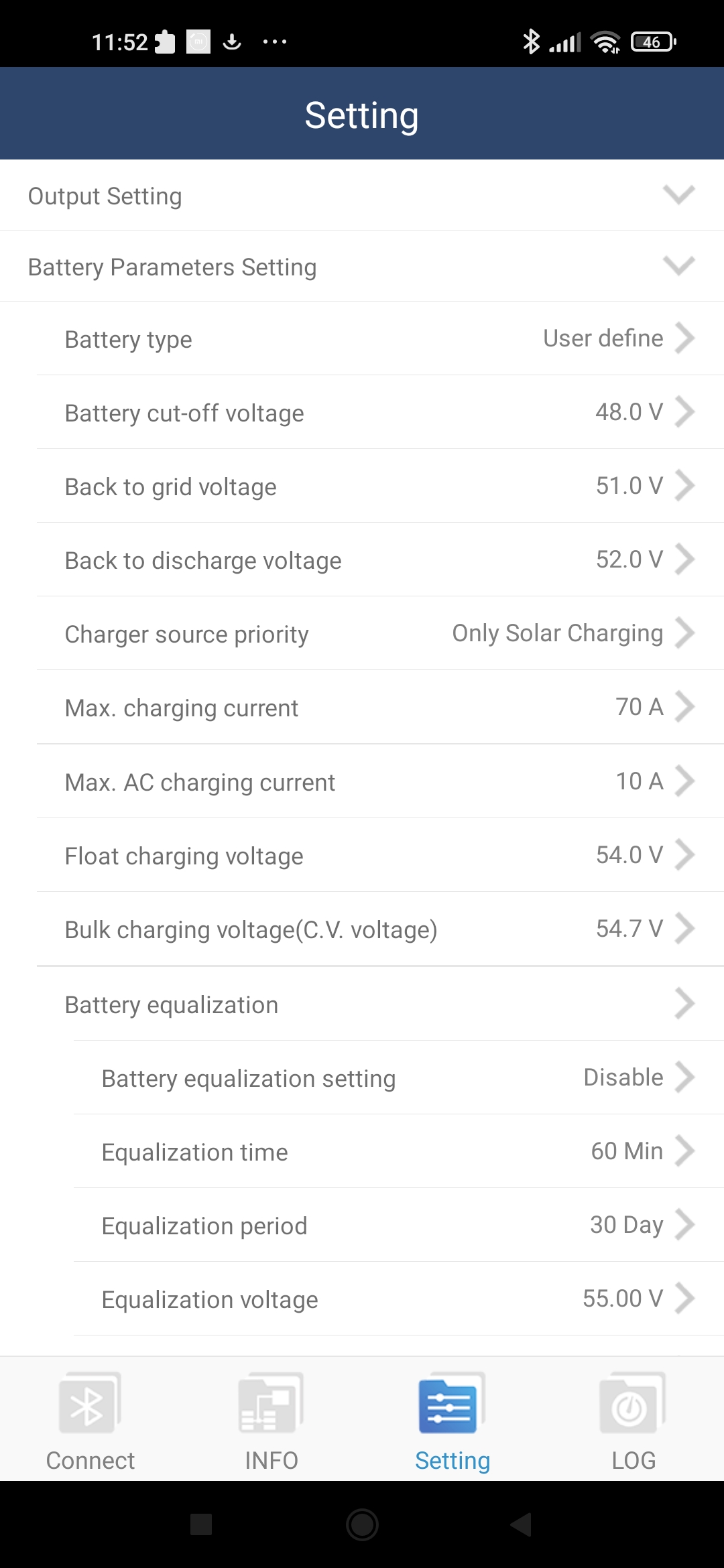 Zdravím vás přítomné. Můžete mi někdo poradit jak nastavit odpojovací napětí baterie u axperta? Jde tam nastavit max 48v. Ale to mě nepřijde úplně o.k.