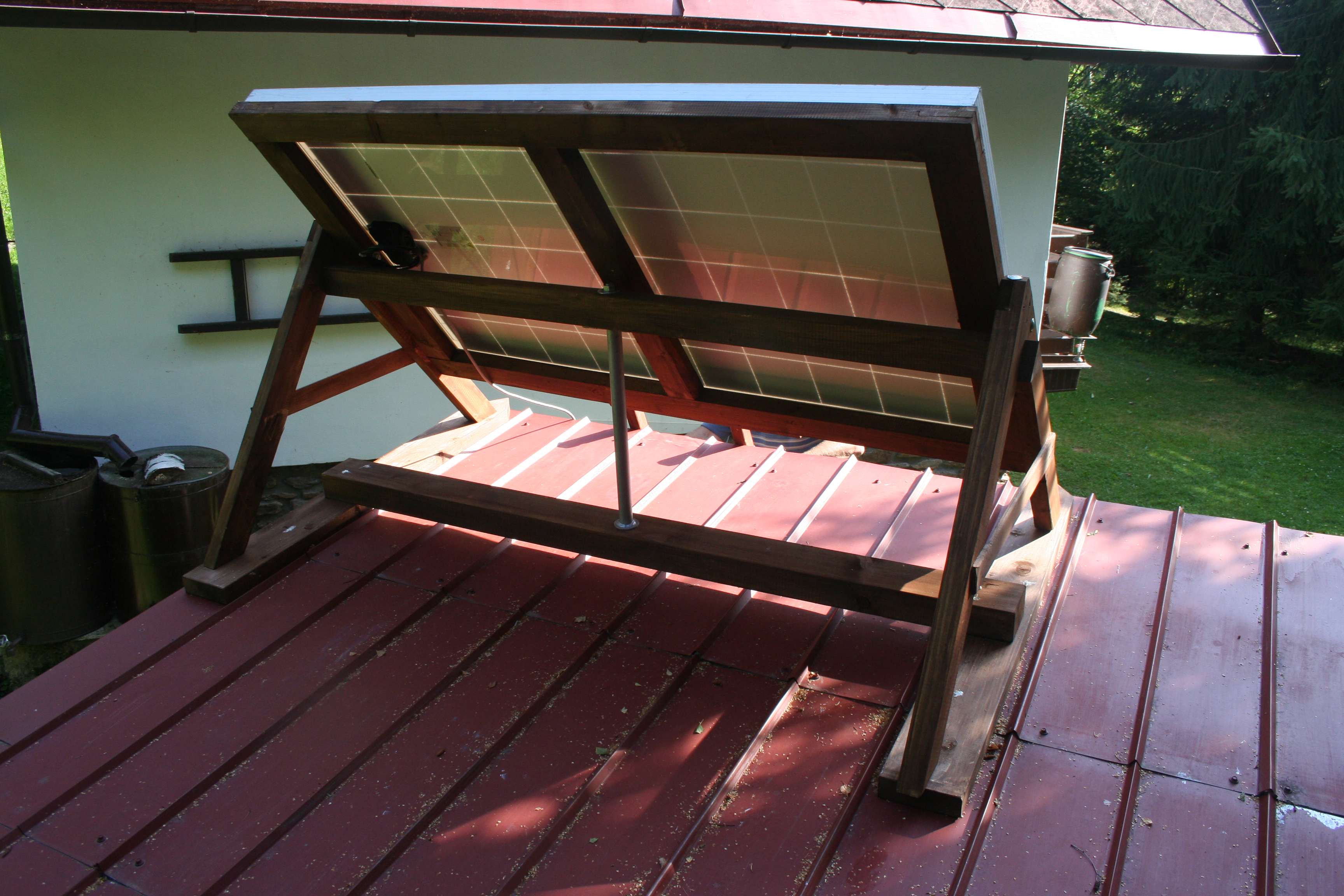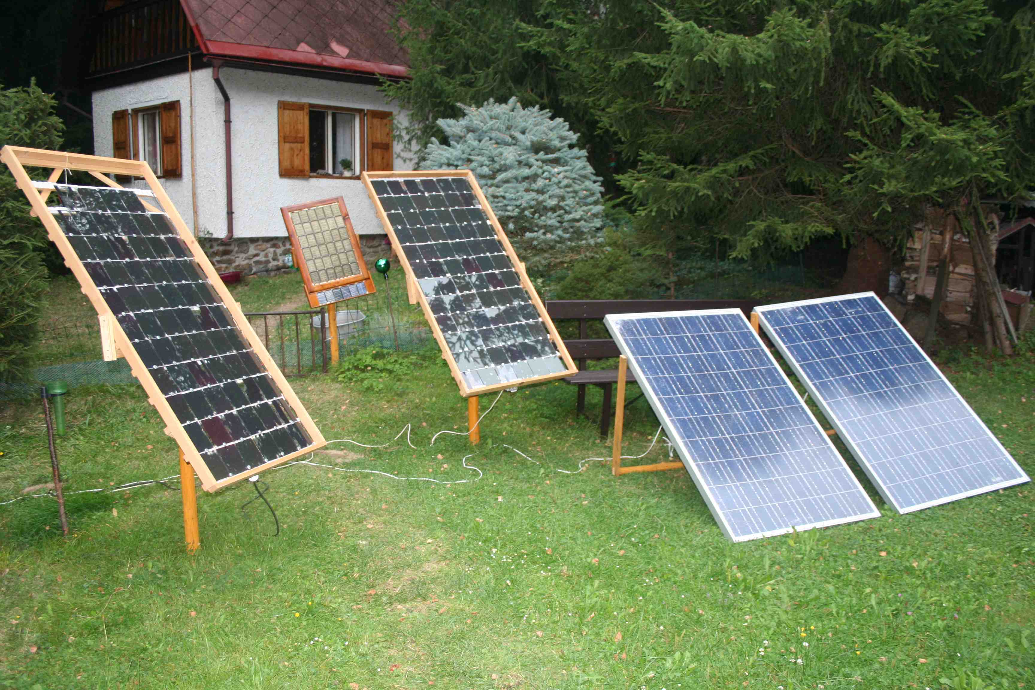 Na fotografiích můžete vidět 2 ks solárních panelů vlastní konstrukce celkem o 144 článcích.