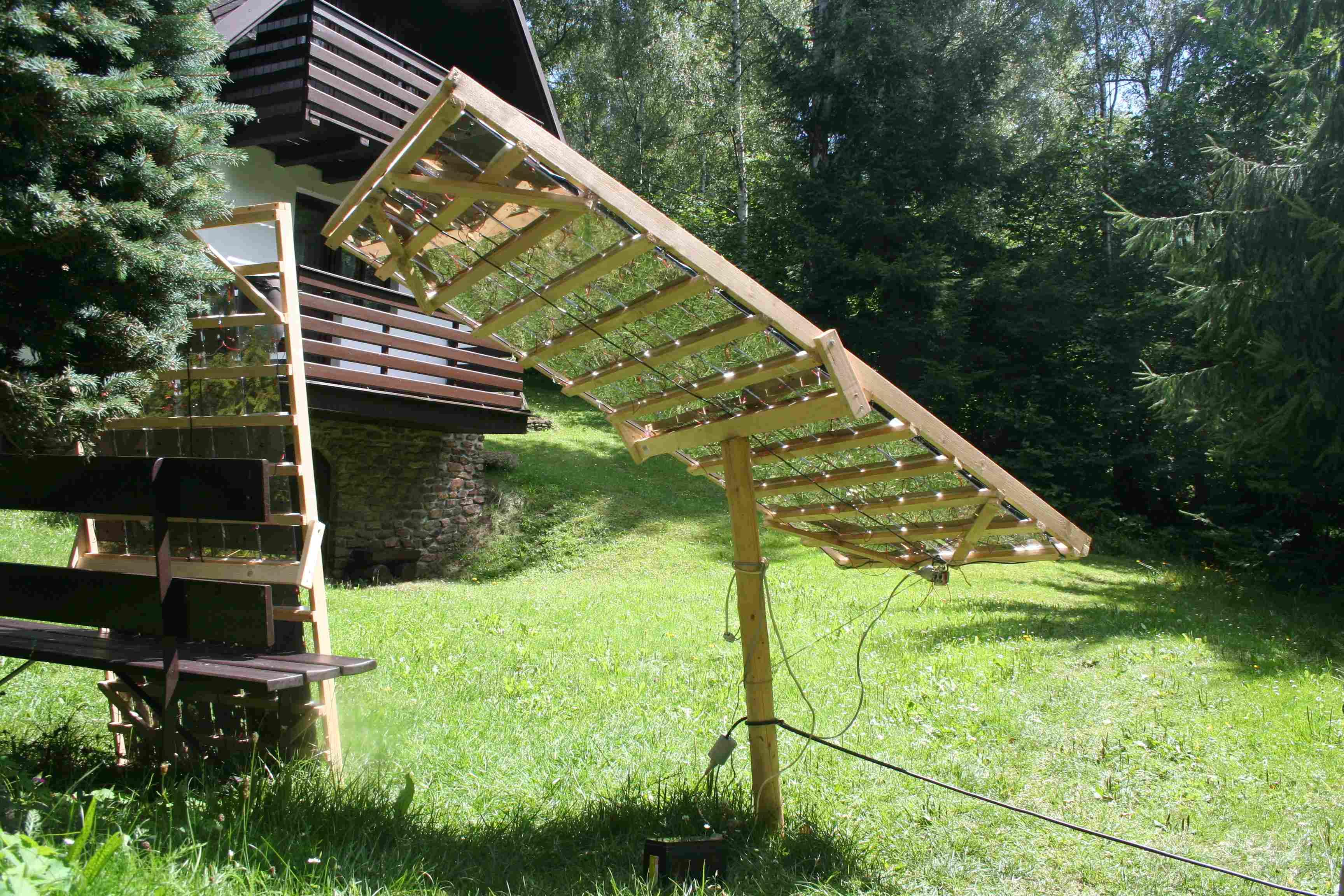 Většina fotografií je ještě z testovacího provozu- panely prozatímně na dřevěných kůlech,atp…
