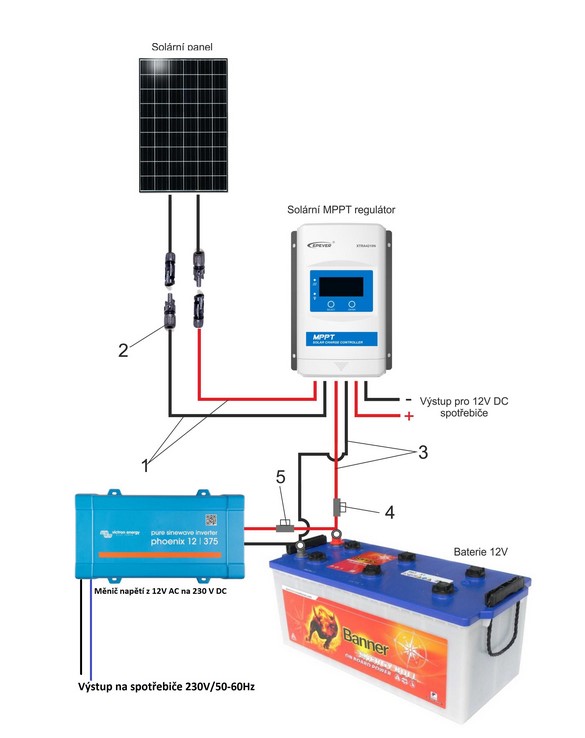 Opravdu. Mènič přímo na baterku. Regulátor dobíjí baterii a hlídá, aby ji nedobil moc. Měnič baterii vybíjí a obvykle si hlídá aby ji nevybil moc. Některé regulátory umožňují připojit drobný spotřebič přímo na sebe.