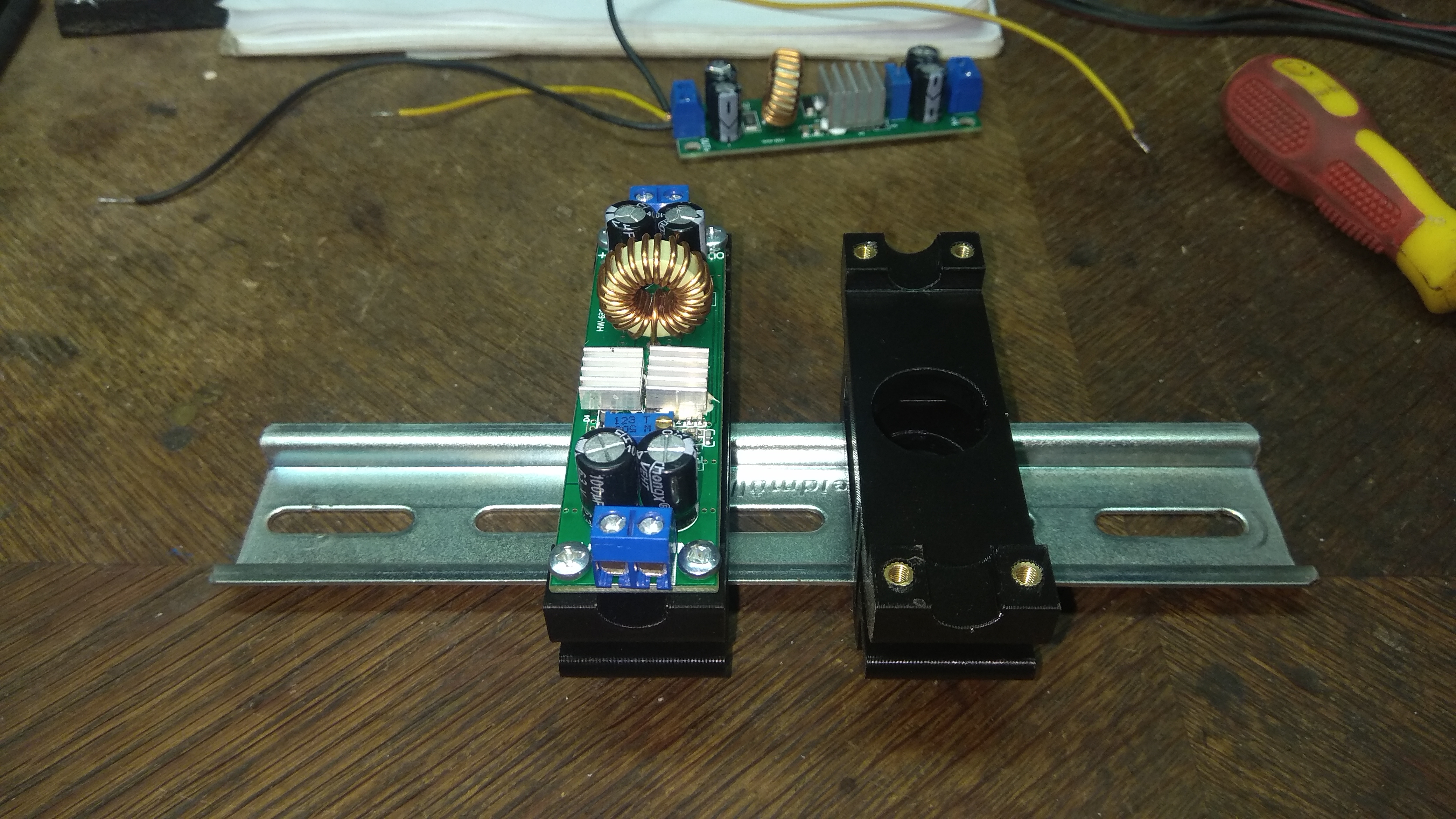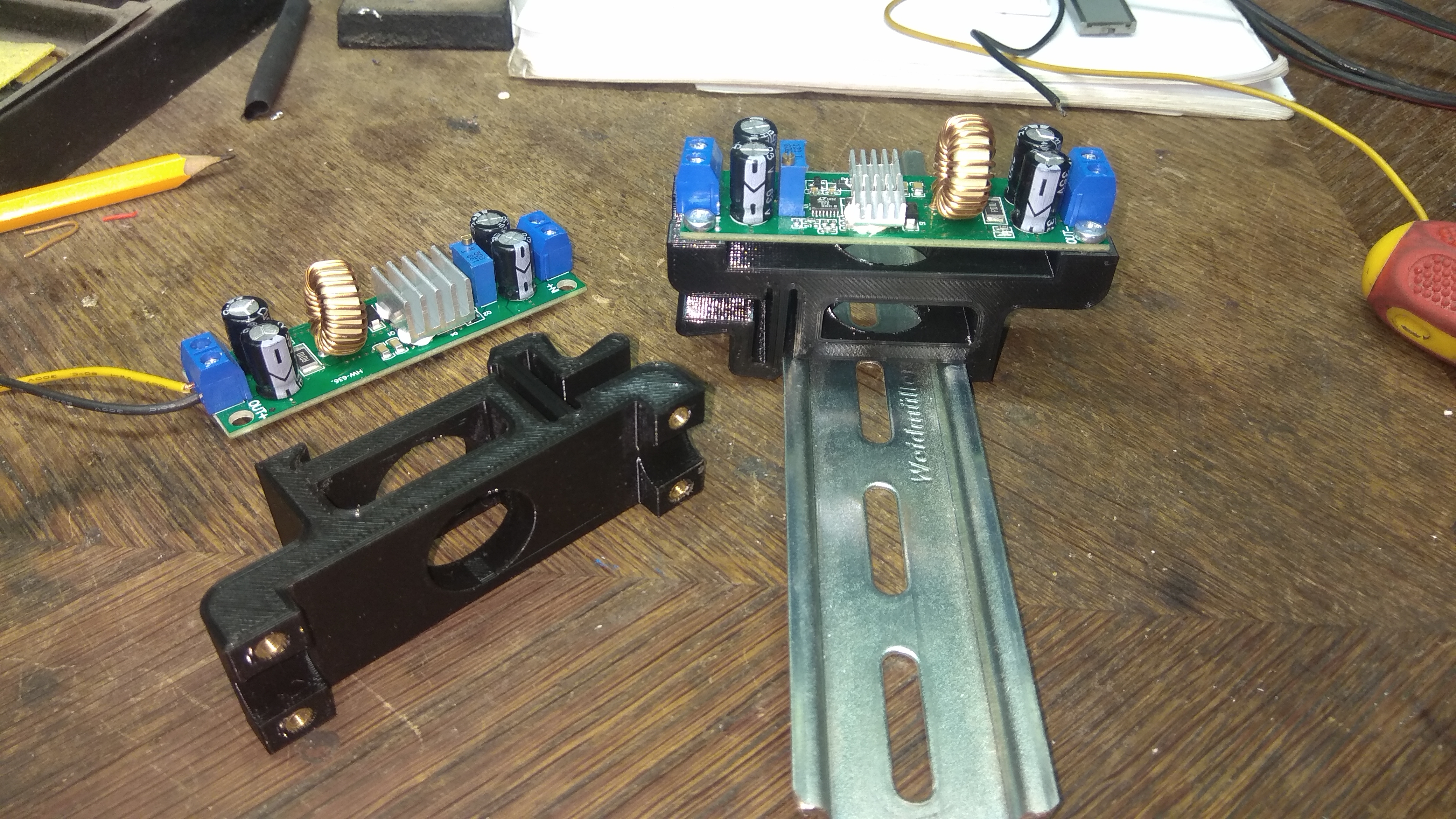 Potřeboval jsem uchytit dva pomocné zdroje (12V a 5V) na DIN lištu.Tak kdyby se někomu hodilo.