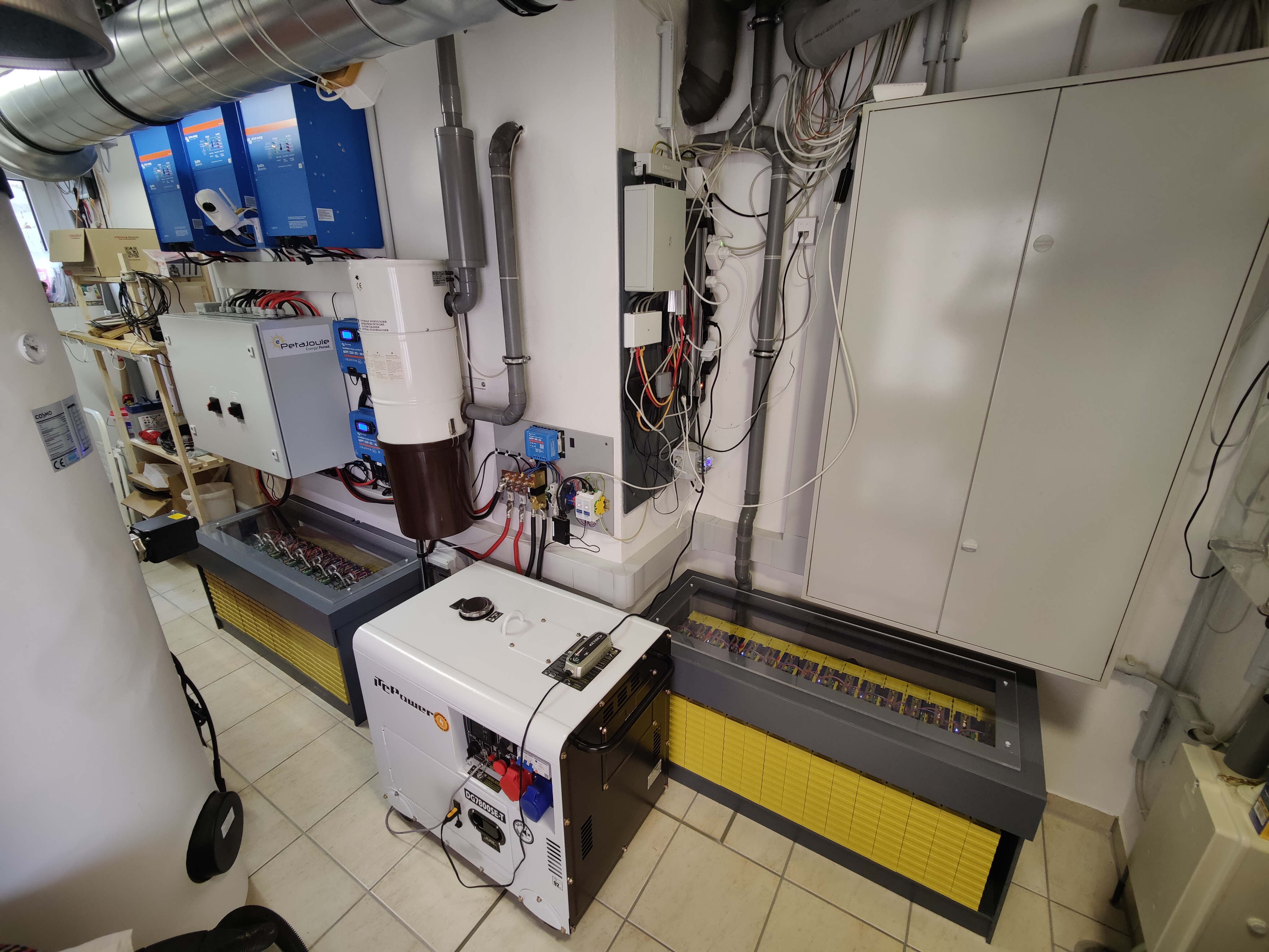 MP2 5000VA, MPPT1 150/60tr, MPPT2 150/60tr, 16.8kWh 17S 310Ah AKU1, 15.2kWh 17S 280Ah AKU 2, 2xJK-BMS