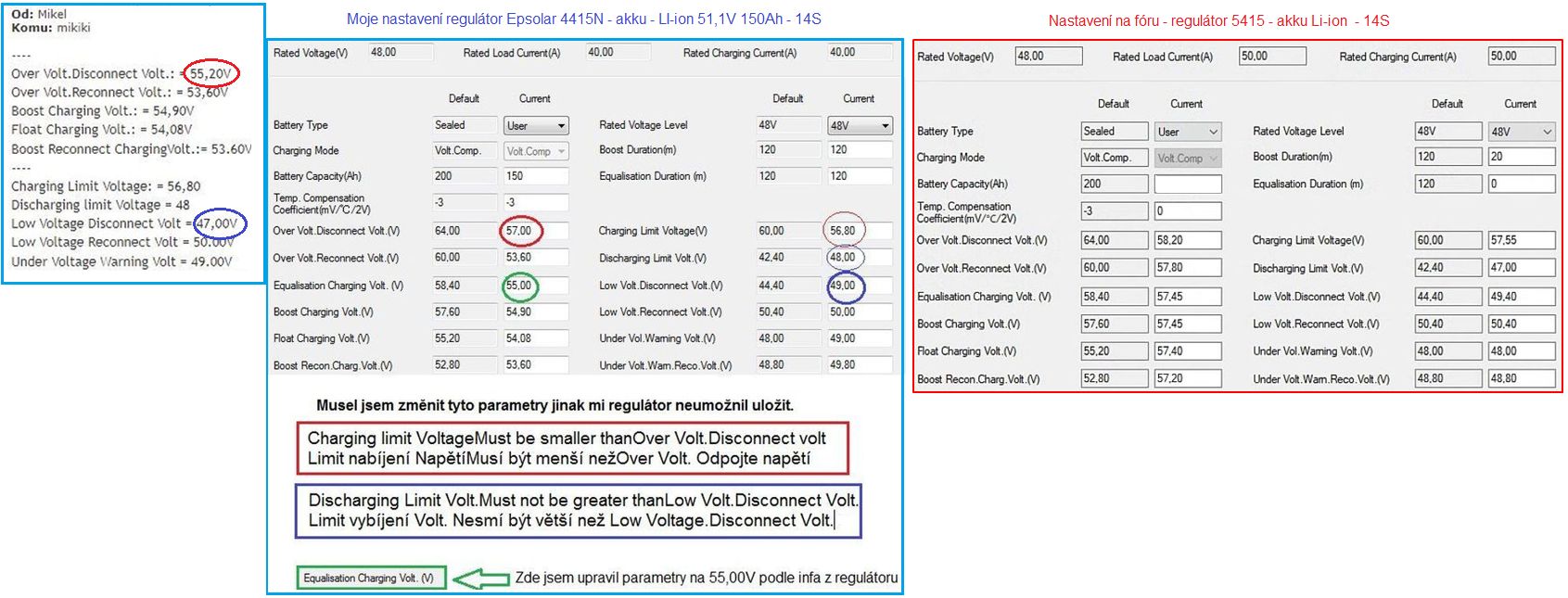 S dovolením jsem našel "podobné nastavení" regulátoru Epsolar + akku 48V - Li-ion 14S zde na foru - ale jsou tam dost velké rozdíly, že teď nevím zda to mám O.K.