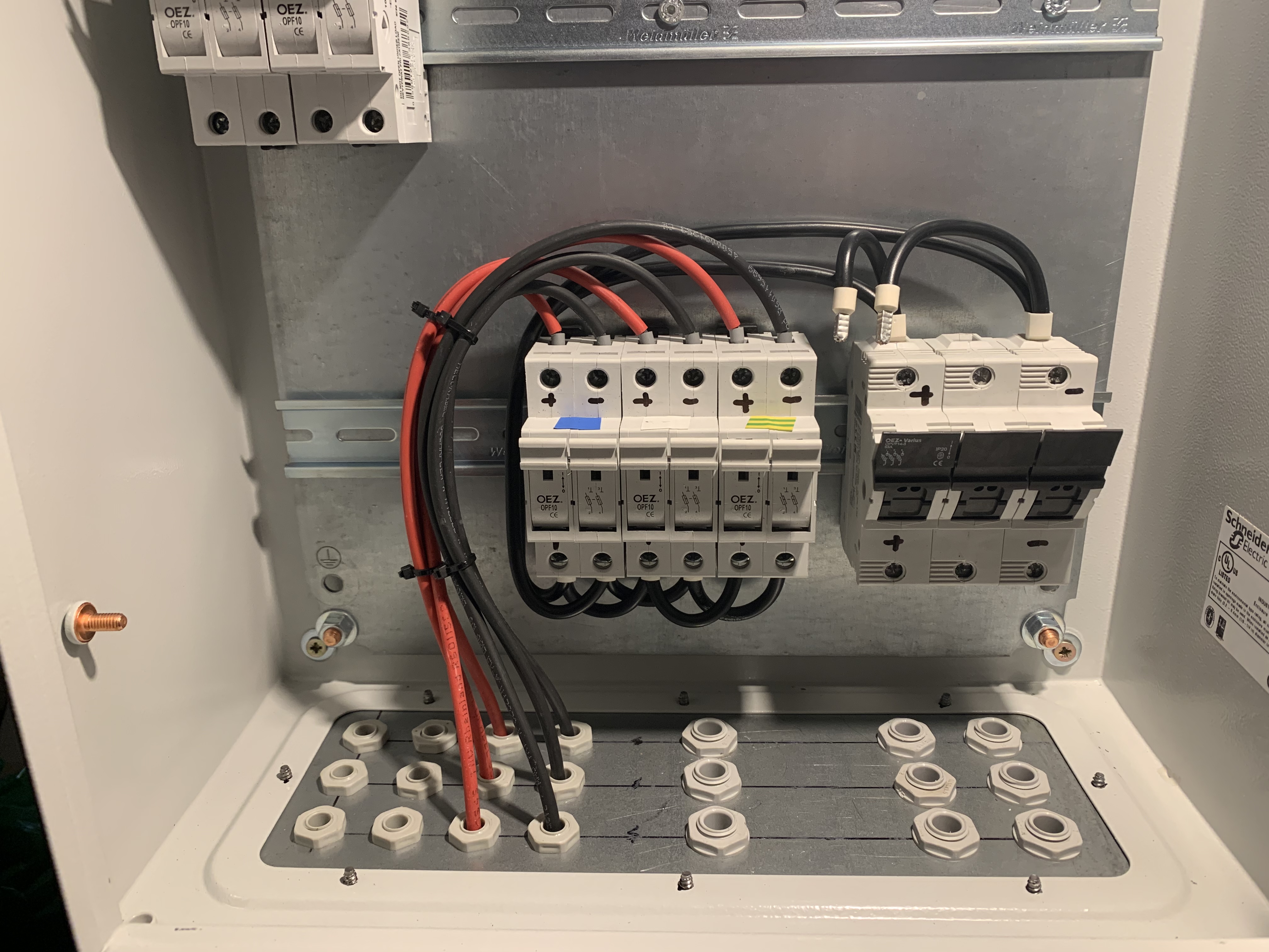 Do rozvaděče na půdu mám přivedeny 3 JZ stringy po 4 panelech 455wp vodičem 4mm2 nejdelší část cca 12m(konec stringu) zde přijde Citel DS240-280V odsud jde do garáže 6m 16m2 do regulátoru Victron 250/100 má zde být druhý citel nebo platí že jsem do 10m? Na domě instalován hromosvod a dodržena vzdálenost 70cm. Na půdu vytažen z HOP vodič 70mm2 10m udělána svorkovnice kam přijdou připojit pospojení konstrukce, svodičů. Zítra budu dávat panely dáváte konektory na kraje panelů aby byli přístupné nebo necháváte pod panelama na profilu? Diky