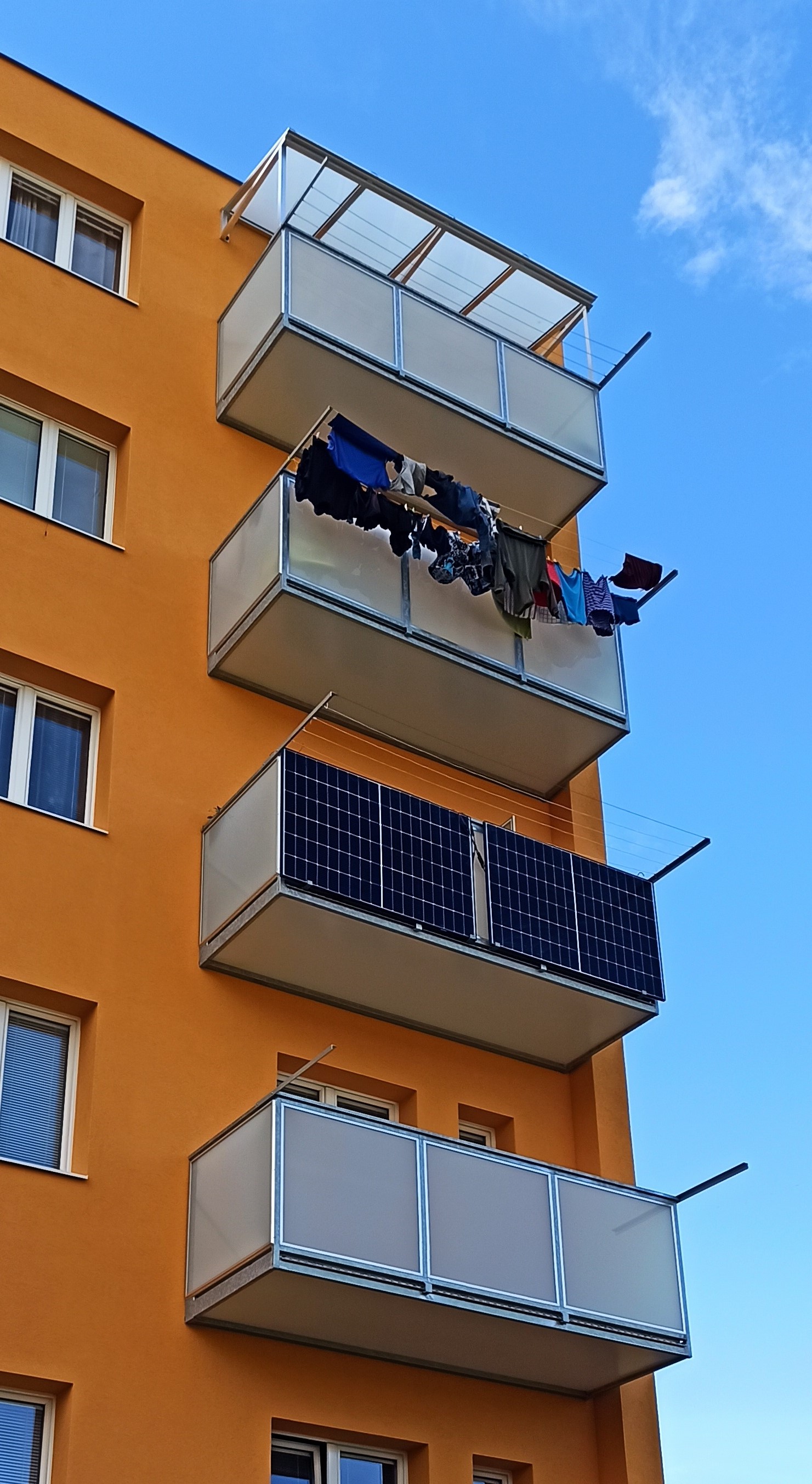 To je teda něco. A ta písemná výzva - byla alespoň na křídovém papíru s impozantní hlavičkou a obsahovala odkaz na legislativu? Nebo se to bralo rovnou jako kdyby to byl zákon sám a připo... poslušně se odstraňovalo?Balkon / lodžie jsou ale téměř vždy ve společném vlastnictví (SVJ, družstvo atd.) s výhradním právem přístupu vlastníka příslušné bytové jednotky. Jinými slovy společenství může zakázat právě instalaci FV panelů na zábradlí balkonu. Osobně jsem se setkal i s tím, že SVJ zaslalo nájemci písemnou výzvu na odstranění IKEA věšáku na prádlo ze zábradlí balkonu.