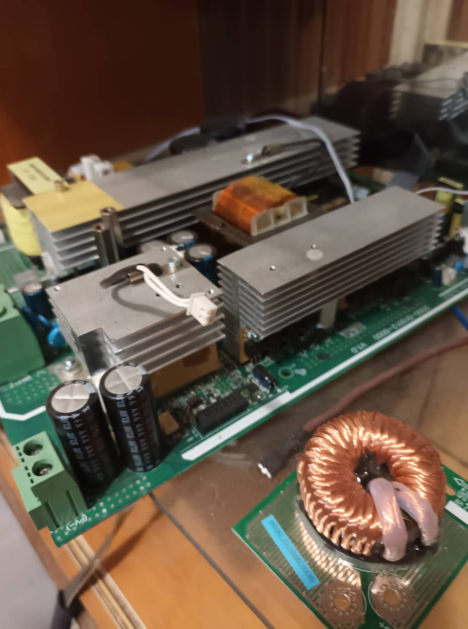 U toho složeného AC část střídače OK plně funkční. Dodělávaný 3 ventilátor pro lepší chlazení, MPPT měněné tranzistory kdo ví kým takže ruku do ohně za to nedám... Druhá deska je taky GC 3kw bez kompletní elektroniky a z vybouchanými a odpájenými tranzistory na MPPT. Pokud to někdo chce na pokusy a nebo z těchto 2 částí udělat jednu funkční piště PM. Cenu bych si představoval: