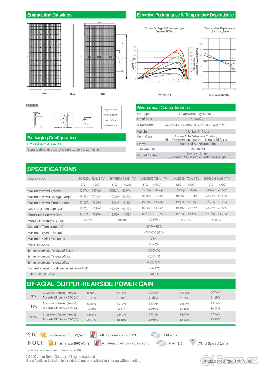 Momentalne je zapojenych 8 panelu Jinko Tiger 530Wp v serii, bohuzel tam de sem je bral uz nejsou. Stridac s MPPT ma jeste rezervu (cinan, mppt do 450V, Voc do 500V).