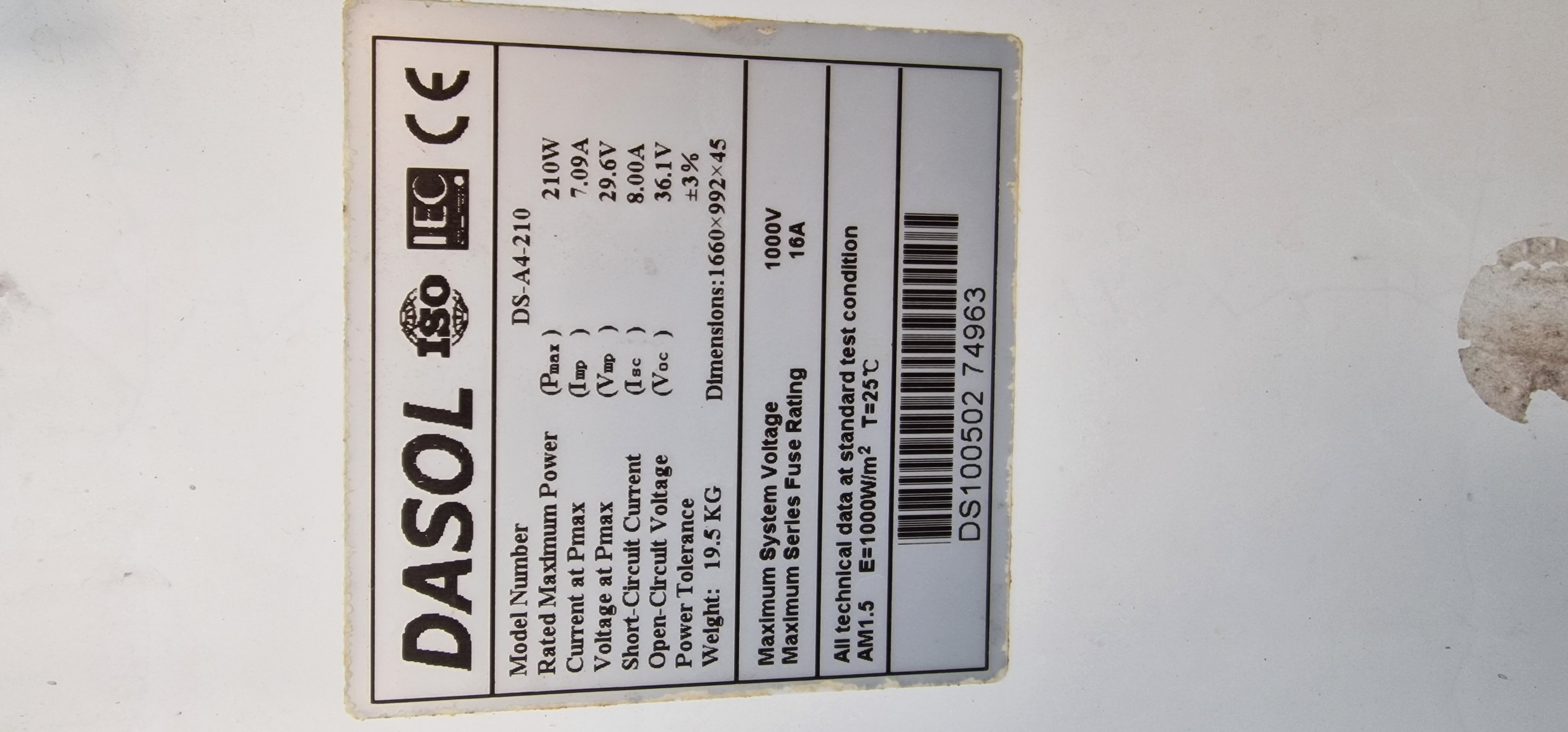 Prodám 6 ks použitých FV panelů DASOL 210 Wp