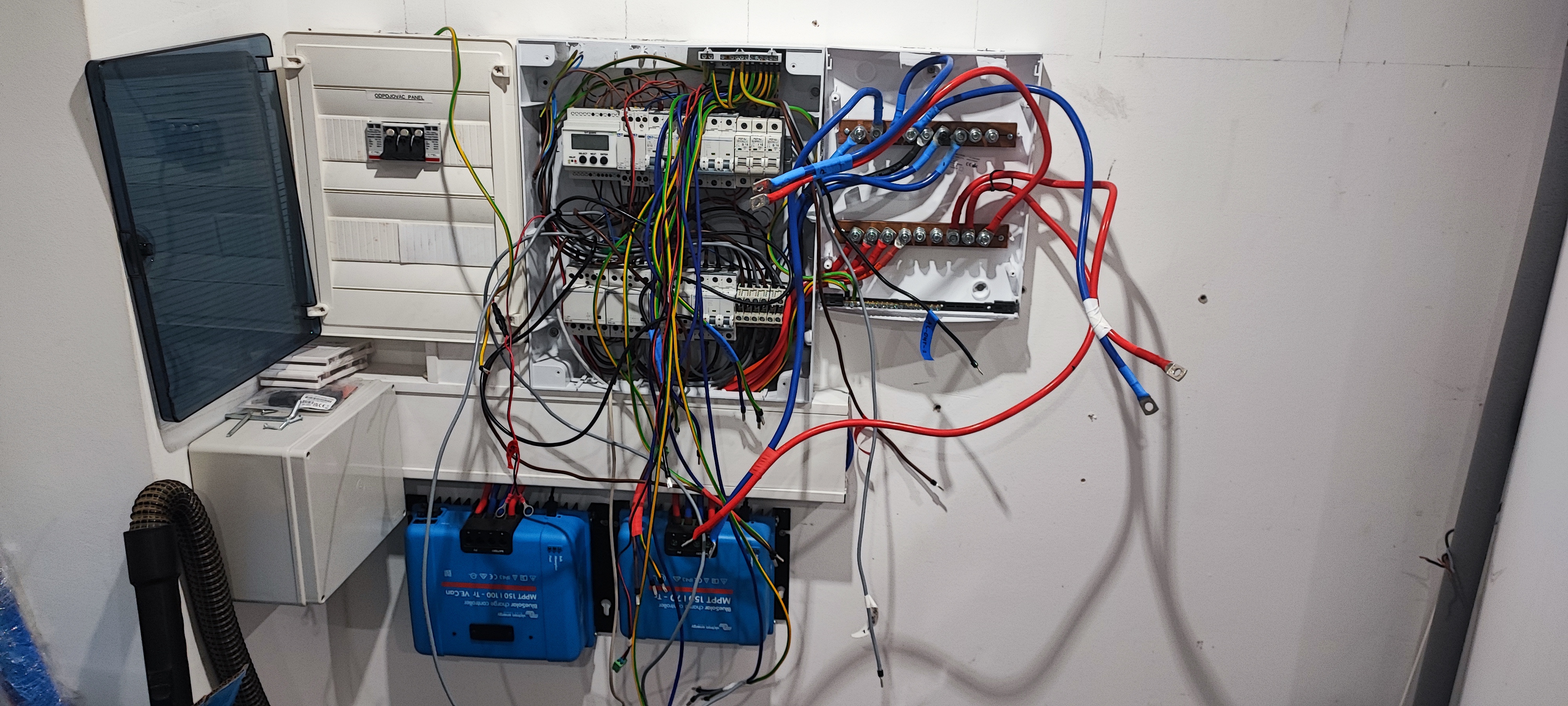 Pokud dáte na každou fázi 2x MP 3000, jak máte v plánu, musíte v tom páru mít naprosto stejné a stejně dlouhé AC kabely. Aby byly oba ty multiplusy zatížené stejně. Mezi fázemi je to jedno, ale v tom páru, který na jedné fázi pojede paralelně, by měly být shodné. Dá se to otestovat po instalaci tím, že se fáze zatíží a změří proud na každém MP zvlášť, pak kabel třeba zkrátit.