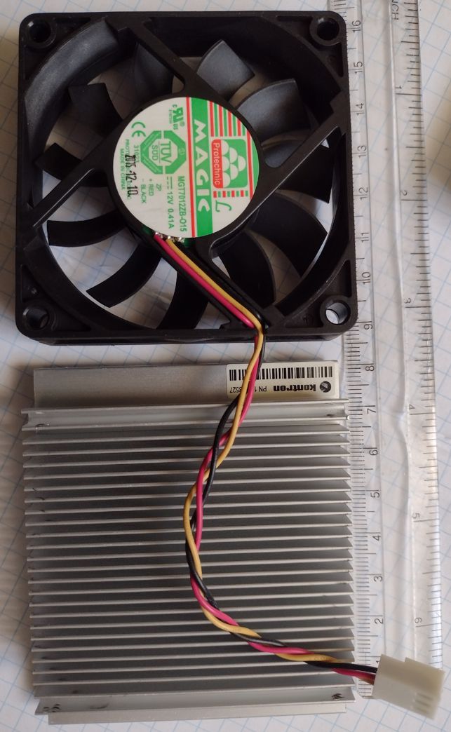 Po upgrade profi zařízení zbyly nějaké ventilátory s chladičem (70x70x15) a samostatný ventilátor (40x40x15). Je mi líto to hodit do elektroodpadu. Ventilátory jsou na 12V, pár jsem jich vyzkoušel a běží jako nové. Celkem cca 20 ks. Preferuji osobní odběr, kousek od Dobrovice.