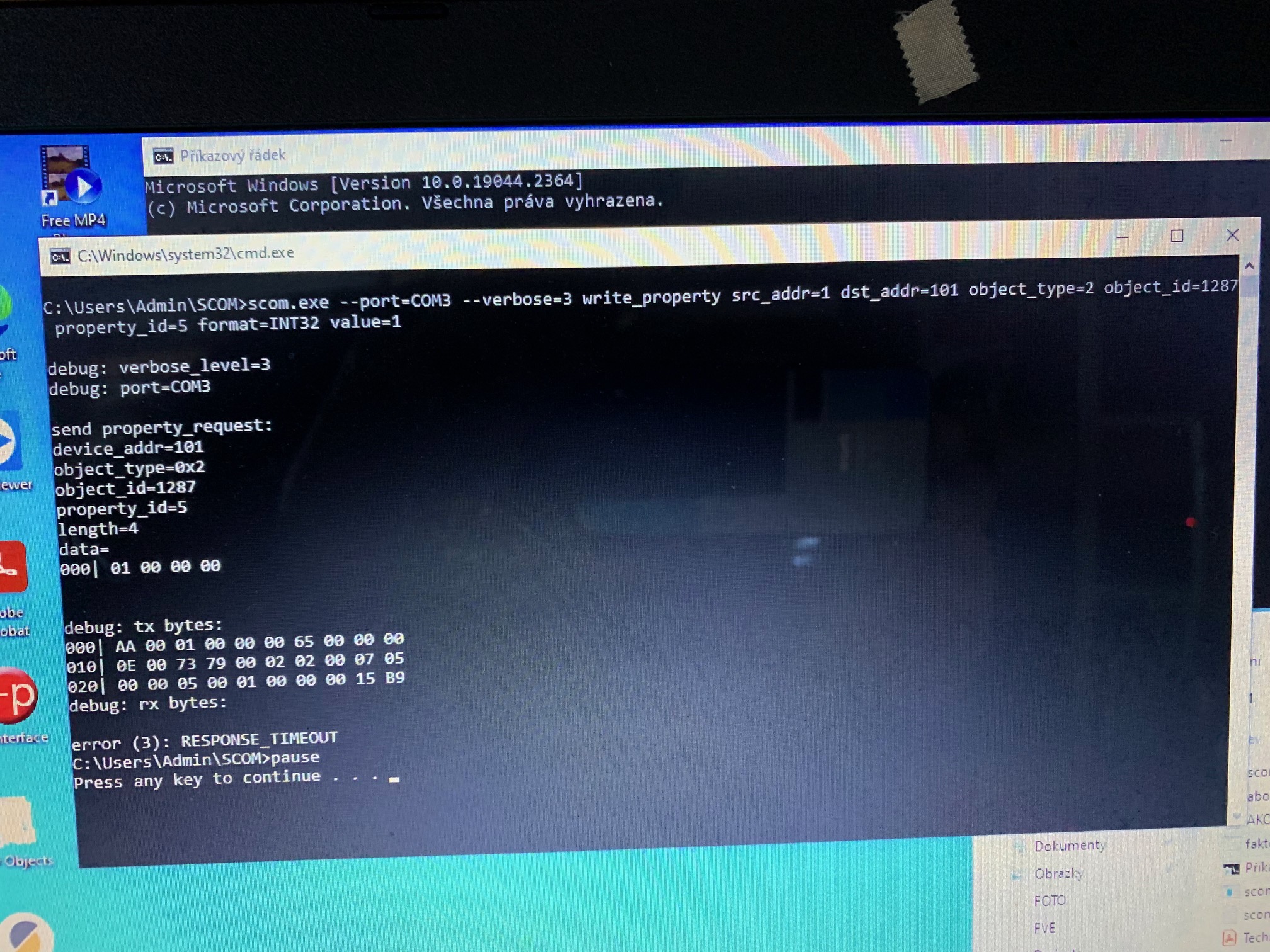 propojil jsem PC <> Xcom-232i napřímo kabelem a zadal příkaz. výsledek viz.foto nezdá se mi to jako korektní průběh, netuší někdo co je to za chybu.
