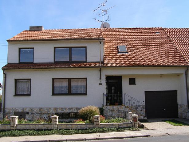 Zapadni strecha je clenitejsi a je situovana do ulice - cast ma sklon 23 stupnu a cast 45, odpoledne byva na te 45 stupnove casti trochu stin od vzrostlych briz, ktere rostou naproti pres ulici.