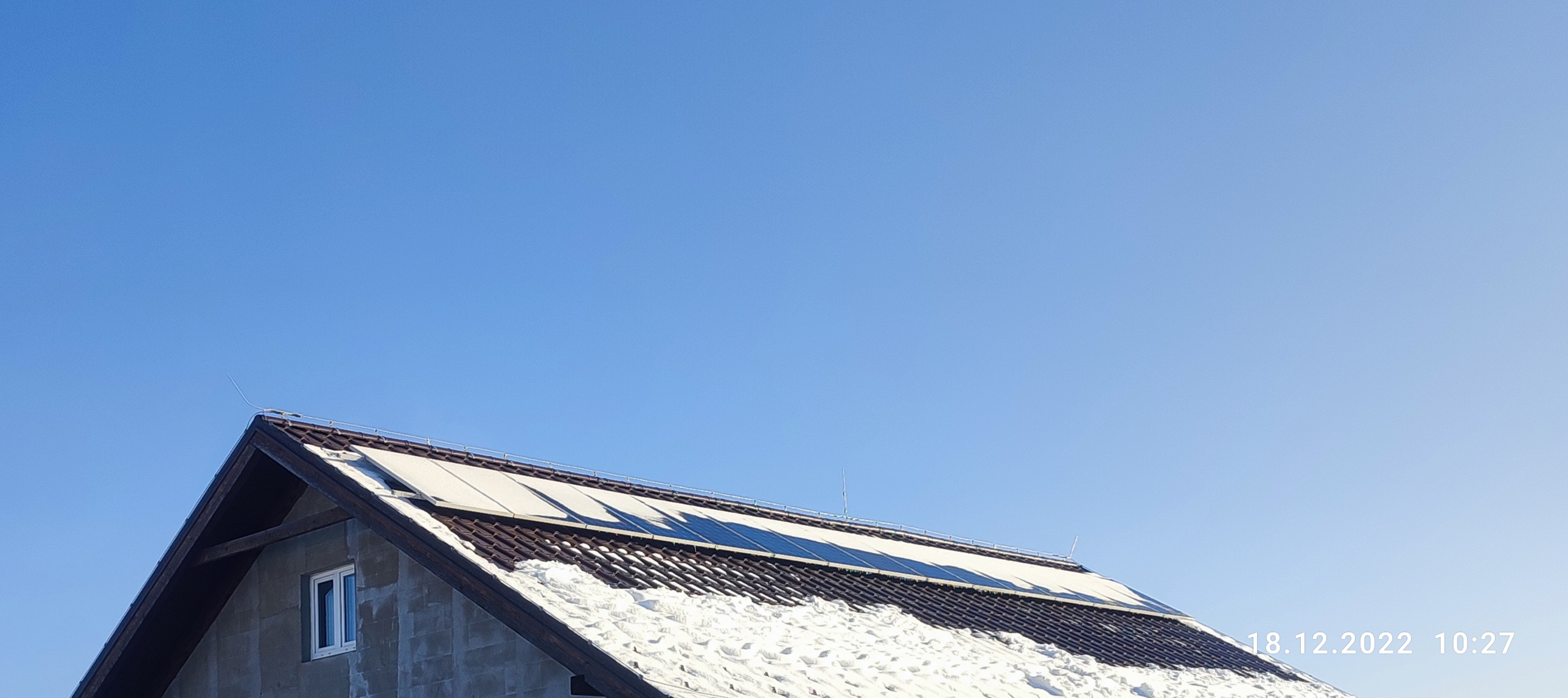 U nás na Vysočině u Žďáru nad Sázavou mrzne cca -12, plno sněhu, k panelům podél hřebenu, na střechu ale nelezu, vrstva kolikrát desítky cm sněhu a pod tím je to omrzlé,...spotřebu nám dotuje náš mazlík vodní turbínka.... A jelikož je to kašnová turbína, a krytý náhon s proudící vodou, tak je to docela chráněné před mrazem...Teď je vody docela dost, tak z reglu turbíny "leze" cca 1400 W , ale pořád, i v noci, což je tak 70% výkonu co to dá.