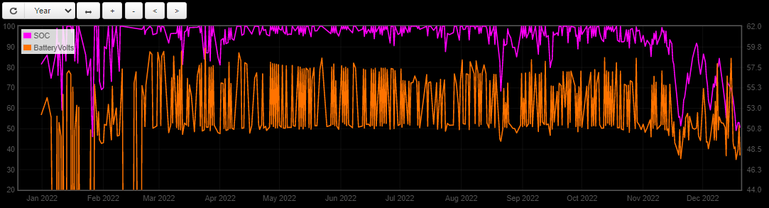 EDIT: omlouvám se napsal sem tam blbost 1180 Ah vybito ale z celého packu, je nutné dělit dvěma. tzn těch 600 Ah reálně. Bohužel dnes už zase svítí a tipuju že SOC pujde nahoru..... Tady jsem pochybil já... PACK mám 1 ks 750 a 1 ks 775 Ah