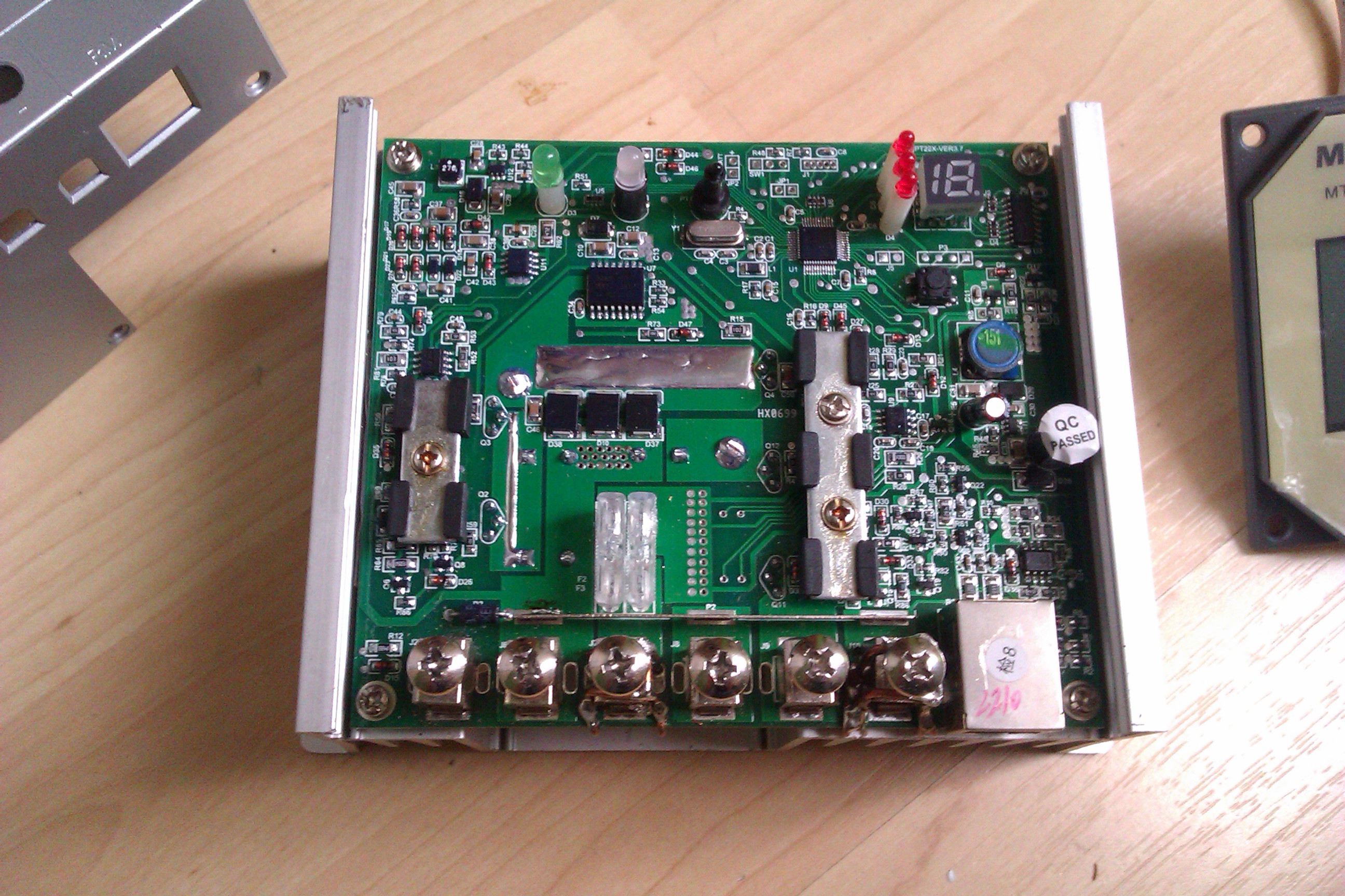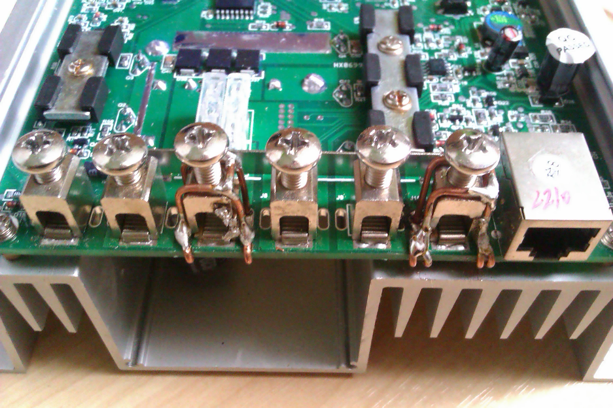 Regulátor má dve mechanické chybičky ktoré som po technickej stránke vyriešil, no po výzorovej moc nie, ale tieto chybičky sú skované pod krytom. Pozrite fotky. Pri uťahovaní silných drôtov a mojej neopatrnosti som zlomil dve svorky tak som tam prevliekol tvrdý drôt a prispájkoval na plošný spoj, teraz to drží lepšie ako originál.