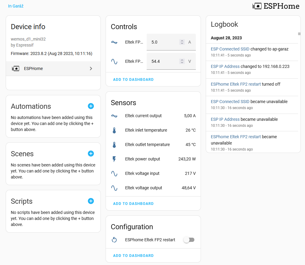2x MUST PH1800 5.5kW, 9kWp V+J+Z, 600 Ah LiFePO4 s BMS JBD 200A, SW: Home Assistant na Synology DS923+ ku tomu ESPHome, Tasmota, MariaDB, InfluxDB, Telegraf, Grafana, Zigbee2MQTT..., HW: ESPlan (ESP32 + LAN 8720 + RS485). Nejaké moje projekty: MUST-ESPhome, ELTEK Flatpack2 ESPhome, ESP32-EMON, PZEM-017@WiFi, diyBMS-CurrentShunt-ESPhome , BMS UART-TS485 adaptér