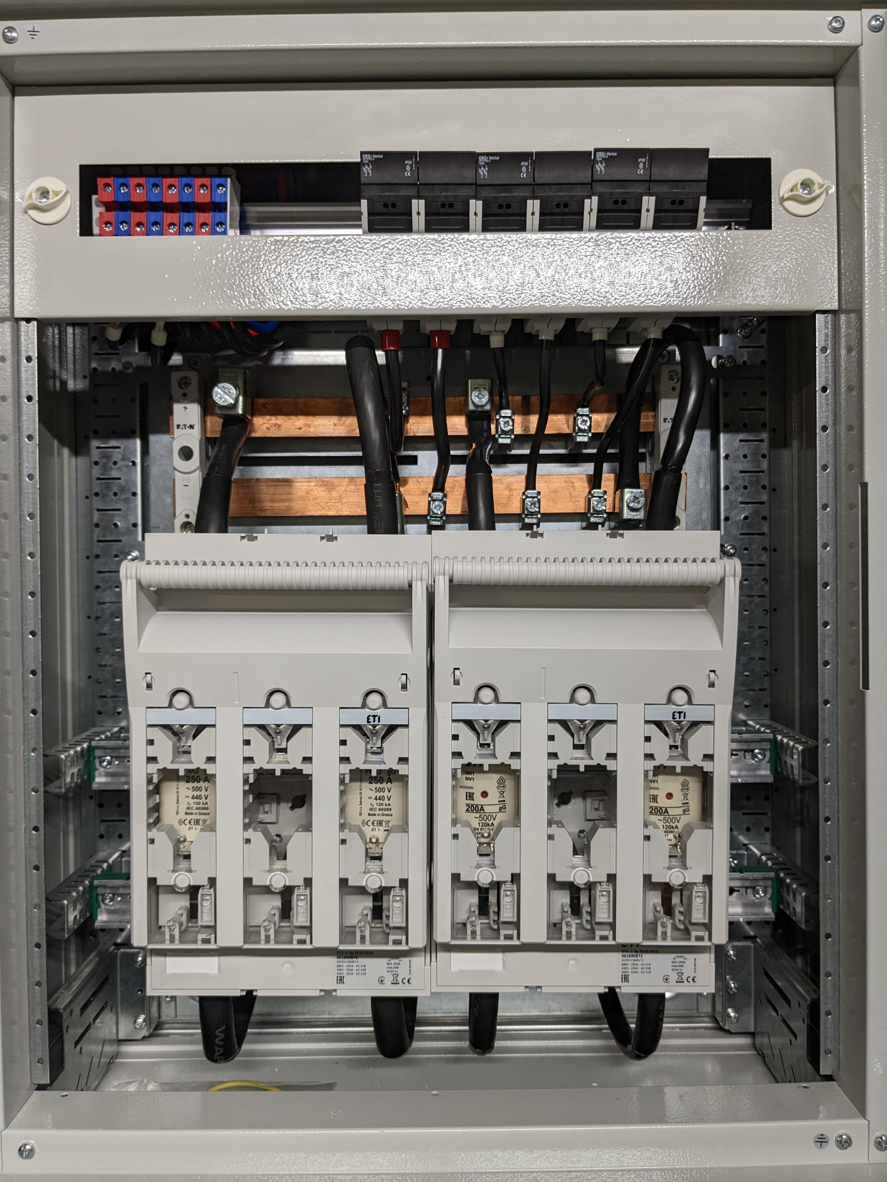 Já to mám takle. Proč třípólové odpojovače ? Jsou levnější než dvoupólové.