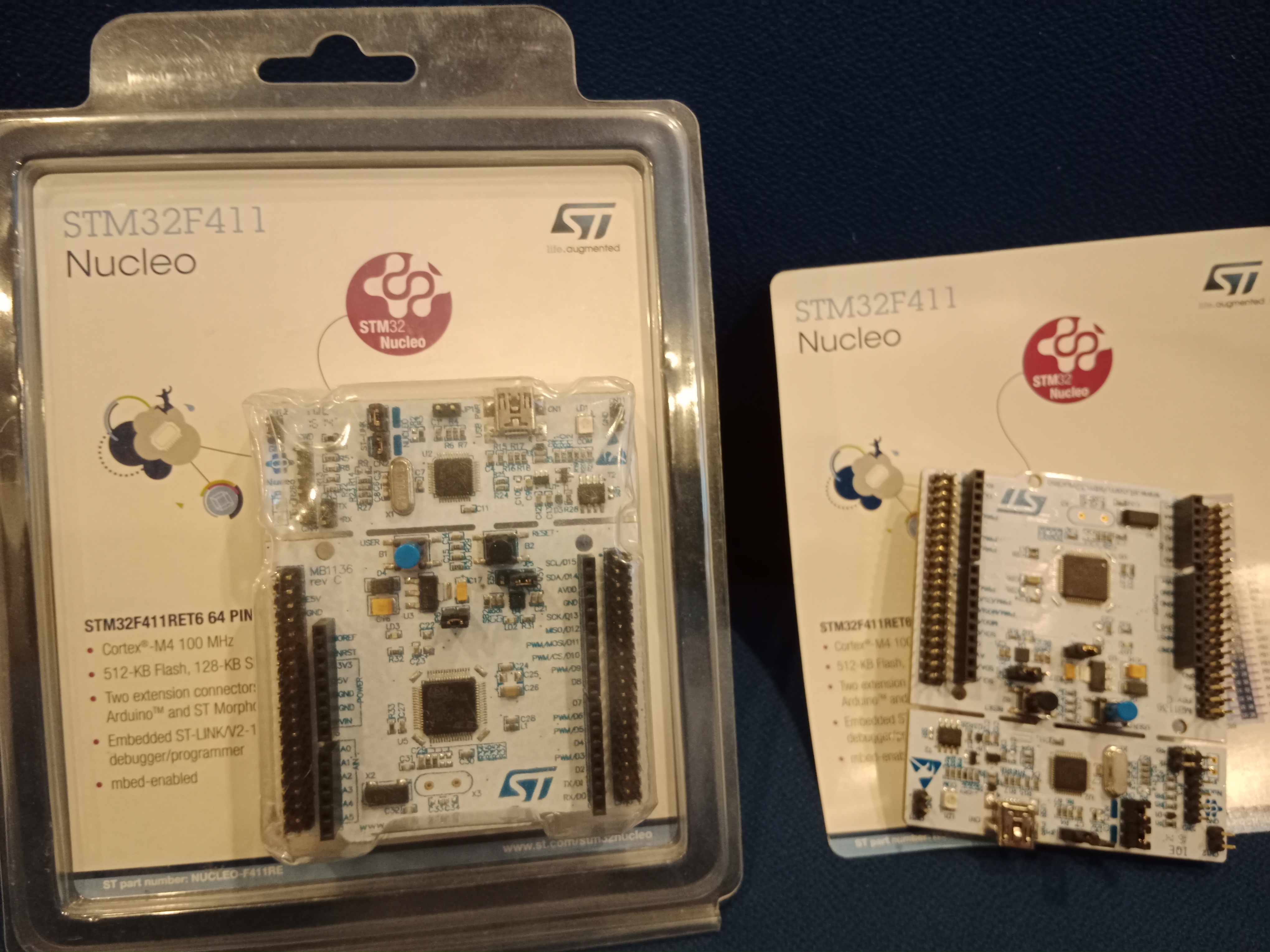 2x STM32F411 Nucleo (má to na sobě headery kompatibilní s Arduino deskami)
