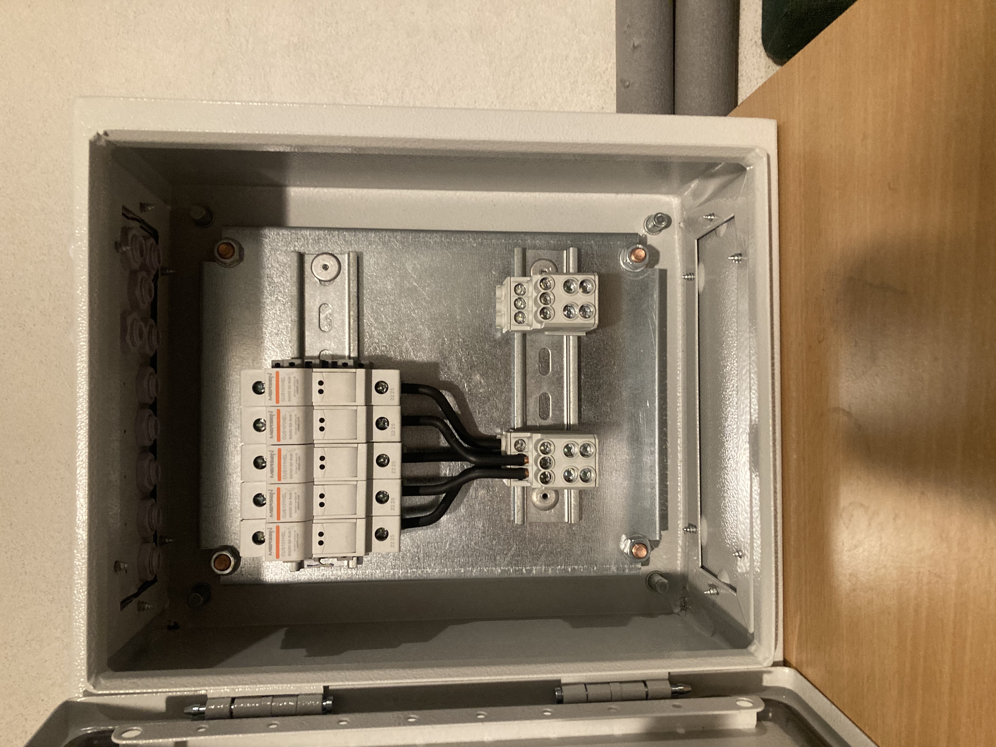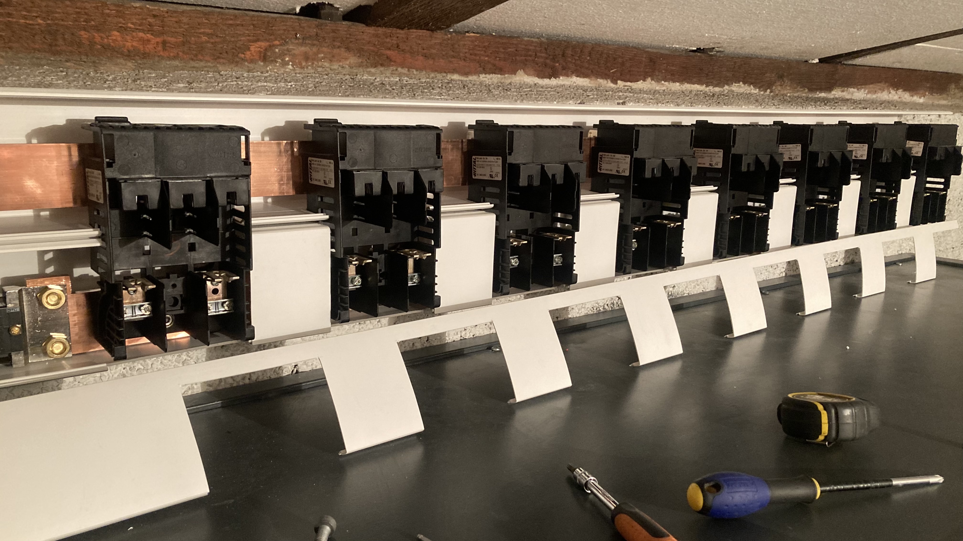 Kazdy odpajac ma zozadu nozicky na uchytenie na pasovyny..a od spodu mam vyvody na baterky a takisto aj menice a regulatory.ono vyhoda tychto odpajacov je ze sa daju prerobit lahko aj len cisto na kable alebo vyvody presunut na vrch..ako kazdemu dovoluje instalacia..