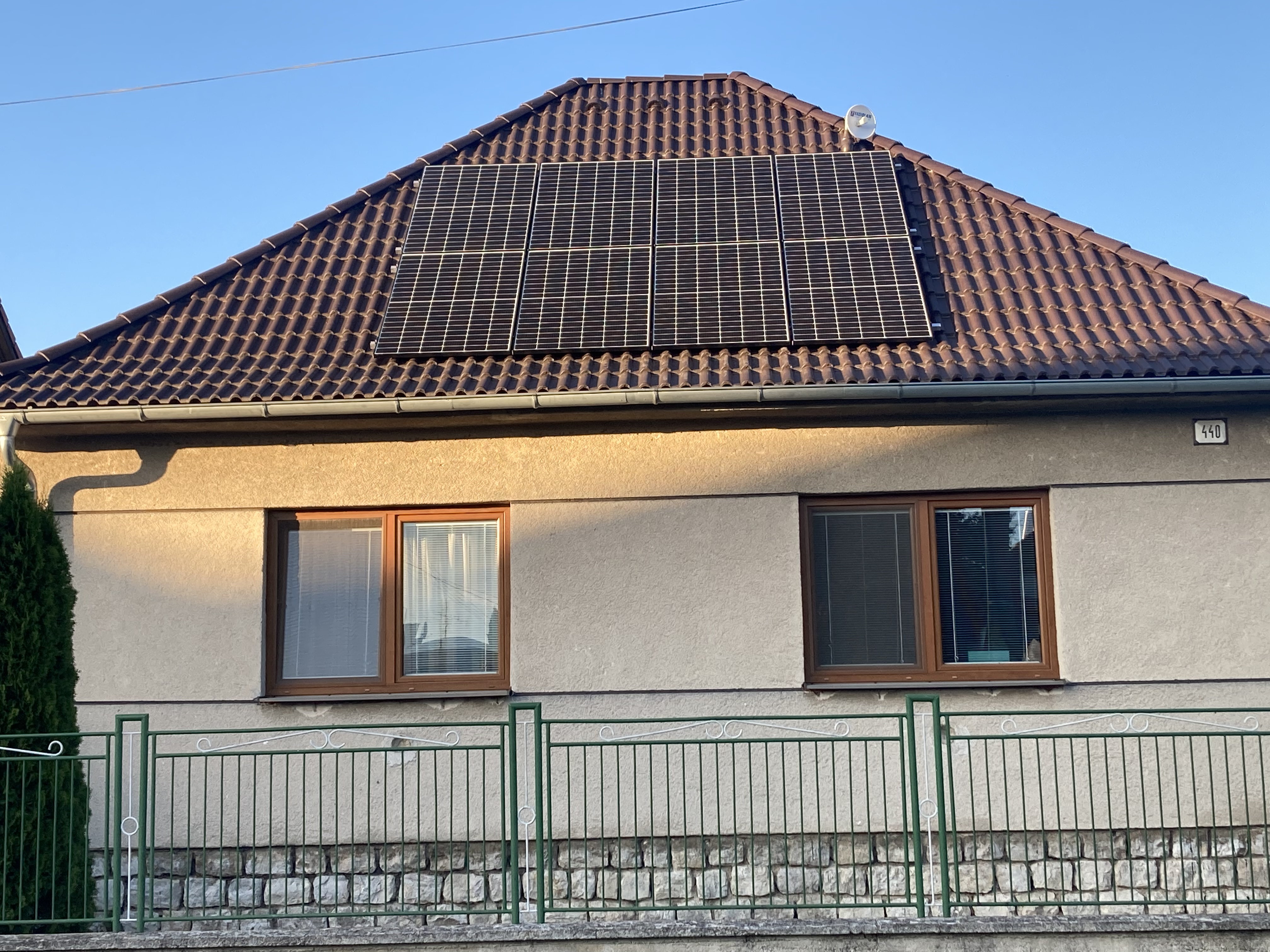 13,38 kWp: 9850 Wp Jih, 2040 Wp Východ, 1490 Wp Západ