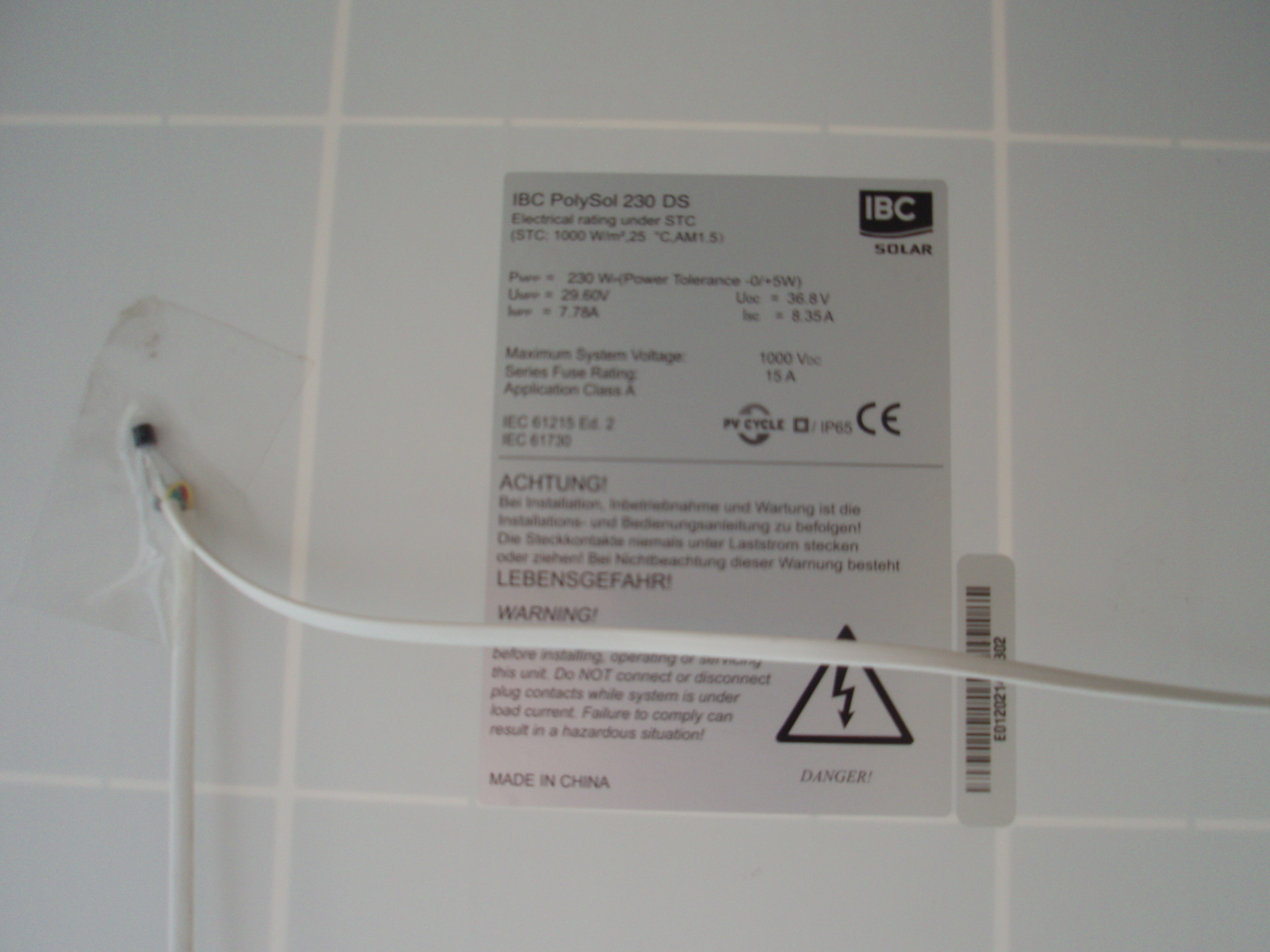 Panely: IBC Polysol 230 DS Pmpp=230W, Umpp=29,6V, Impp=7,78A