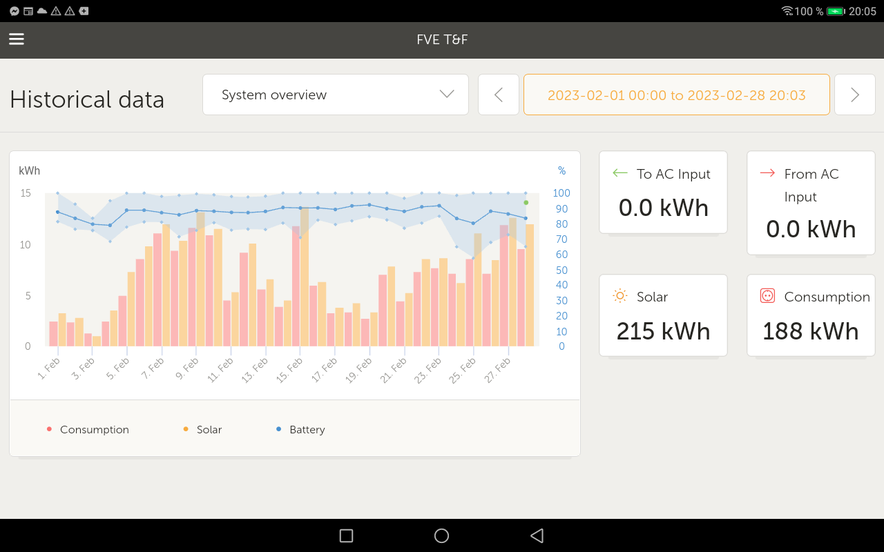 Ahoj Petře, from AC input 29kwh je z druhého měniče, nebo DS ? Máš tam dvě Fve, ale nějak mi to sesedi k tomu grafu z VRM. Já to mám za Únor takto, ale něco málo jede ještě z DS !
