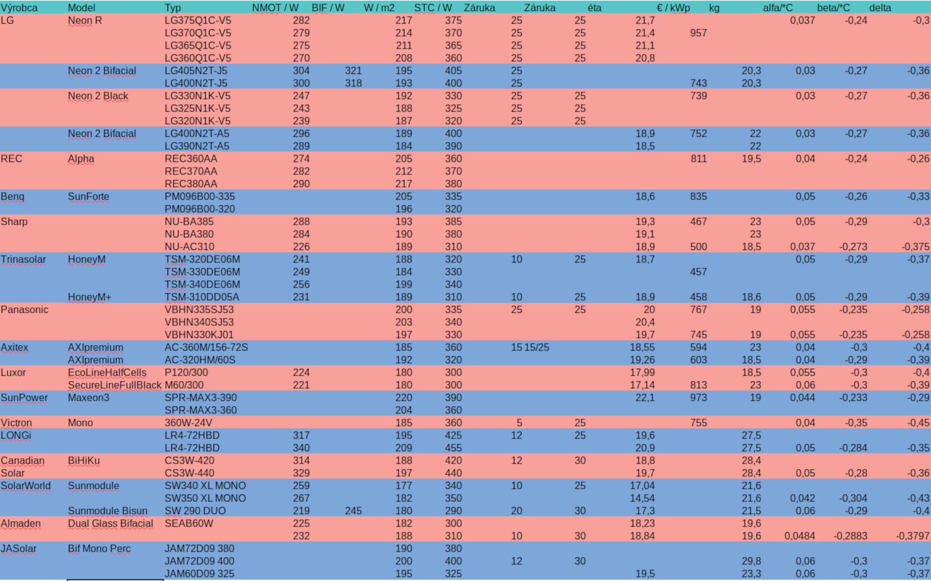 Tento panel jsem měl vybraný původně než jsem oběvil ty levnější Canadiany. Před koupí jsem na našem trhu objevil pouze tyto 3 bi-facial panely: