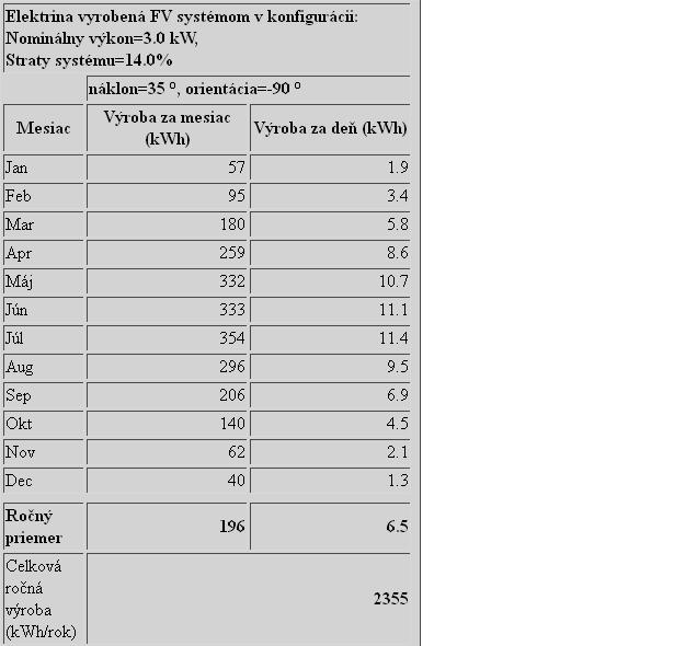 Po zadani souradnic, sklonu strechy a odklonu od jihu mi to na http://sunbird.jrc.it/pvgis/apps/pvest. ... map=europe .. vyplivlo toto: