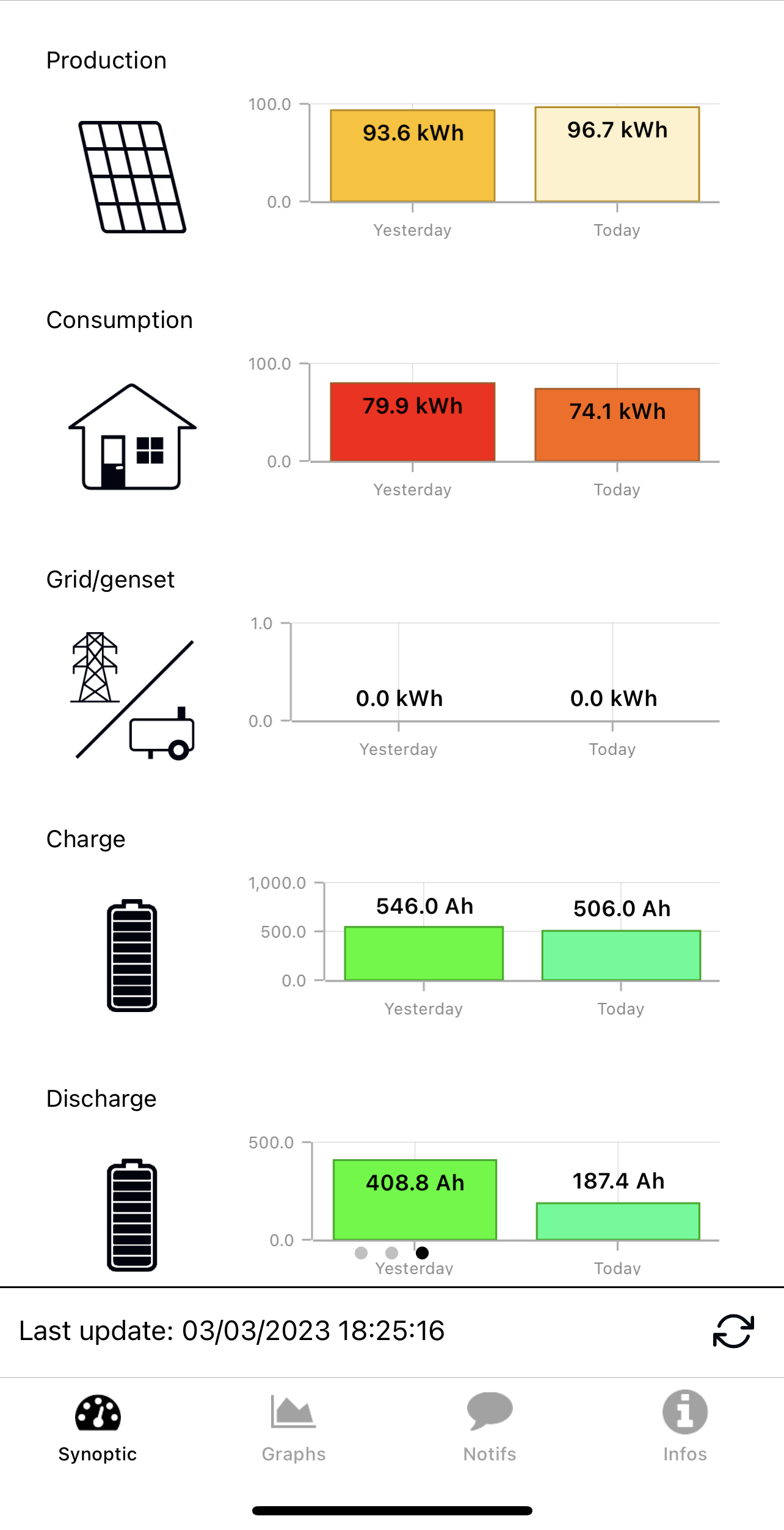 Zatím tam nežiji. Než se nastěhuji, čeká mě ještě další upgrade. Mám koupený další Studer XTH 6000-48. Ten bude přidán k stávajícím třem. Následně to bude trochu přeuspořádáno. Na L1 budou 2xXTH 6000, na L2 budou taky 2x XTH 6000 a na L3 budou 2x XTM 4000. A na garáž přidám panely. Cca 6-8 kWp.