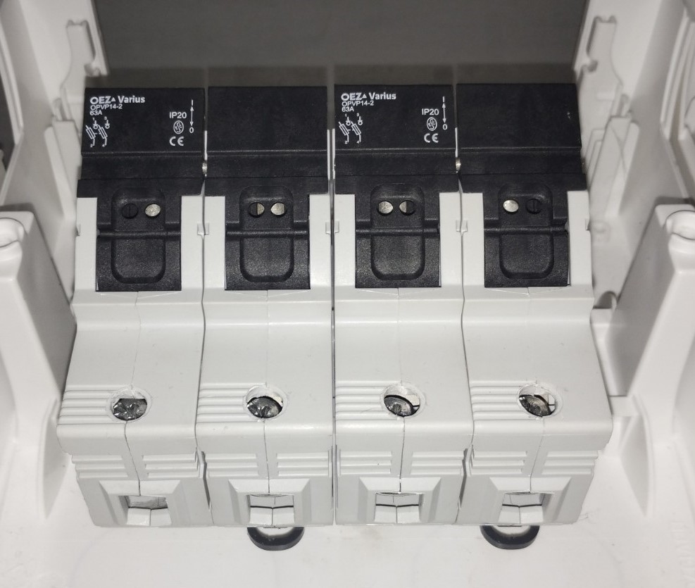 Ahoj, poslední, co zbývá, jsou dva 2P odpínače OPVP14-2, včetně pojistek 63A - cena za oba dohromady 400Kč.