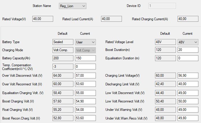 Overvoltage reconnect voltage máš strašně nízké, to se ten regl připojí po předchozím odpojení, až je baterky vybitá o 1/3 ...