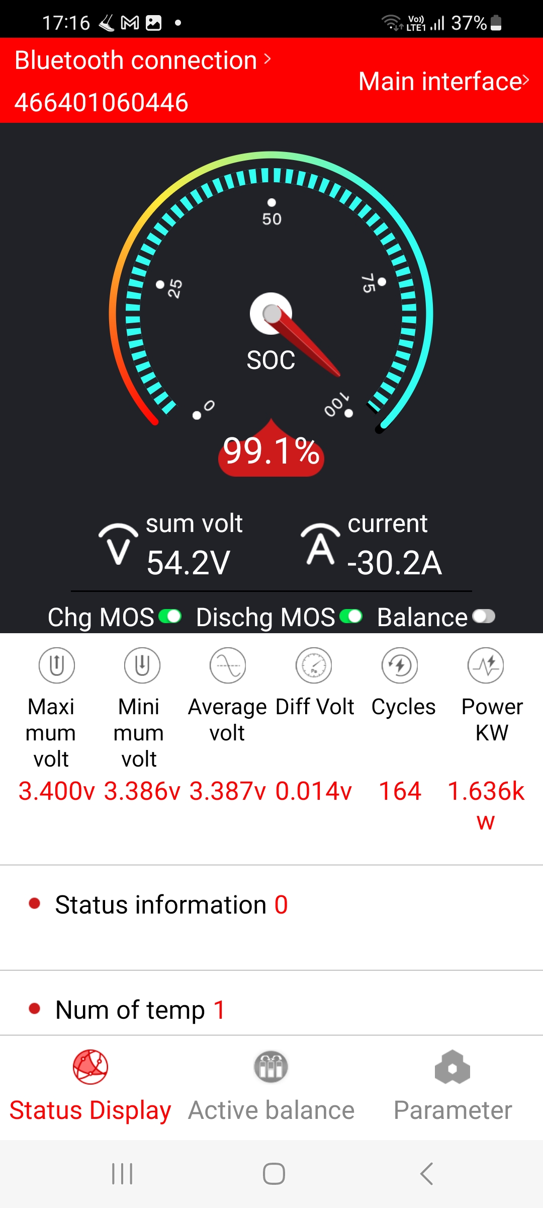 Před cca 18měsíci jsem uvedl do chodu baterie 16S od Litokaly za cca 1500USD.Teď jsem z důvodu spojení s gelovkama přikoupil od Mivvy 2články 130Ah,ty jsem zapojil pararelně a přidal jako 17článek (260Ah)bez BMS.