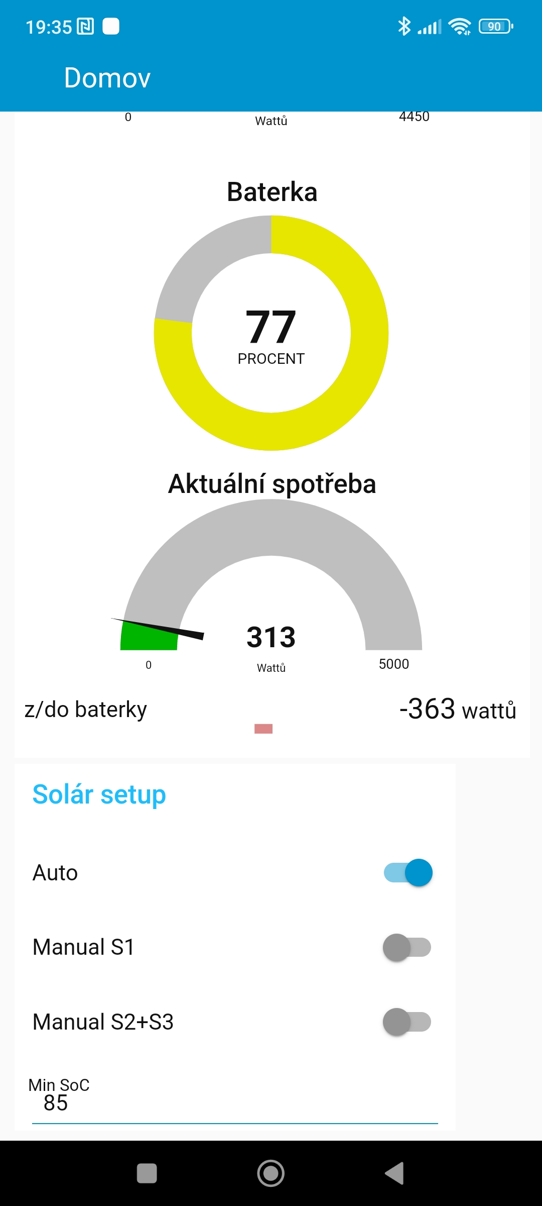 Mám v NodeRed udělaný takový dashboard kde můžu v případě potřeby automatiku vypnout a manuálně pouštět jednotlivé spirály. Případně nastavit od kolika soc bude automatika funkční. Díky vrm můžu dashboard upravovat i vzdáleně.